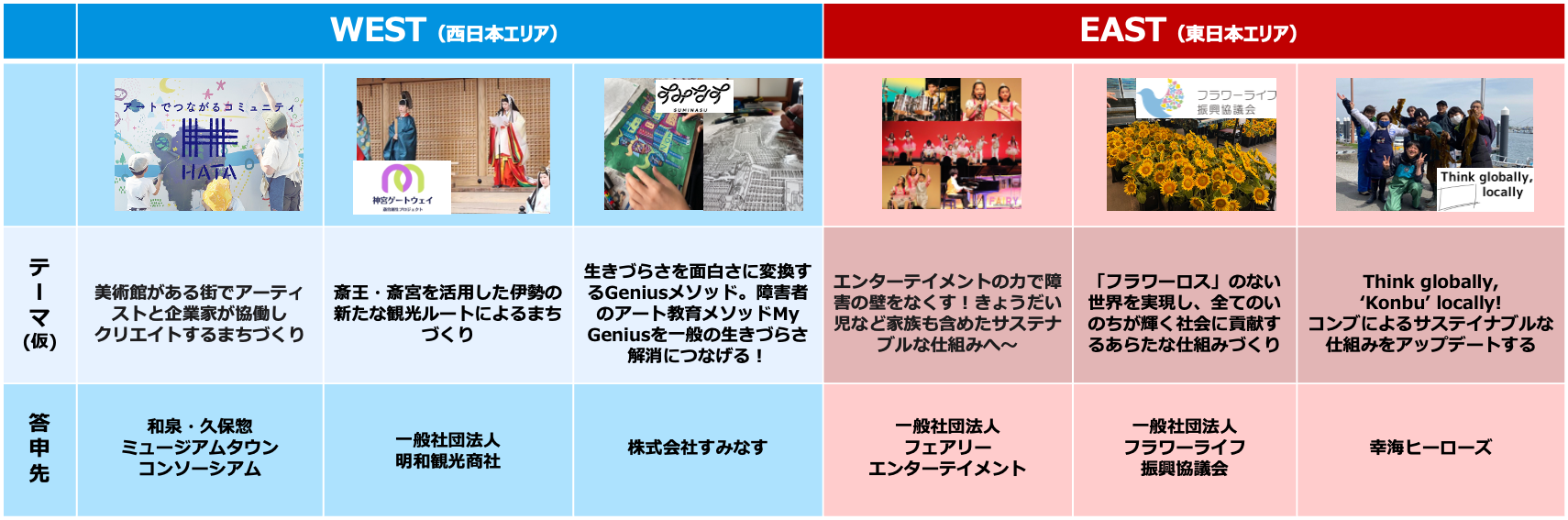 ※西日本エリア開催:①②③ 東日本エリア開催:④⑤⑥