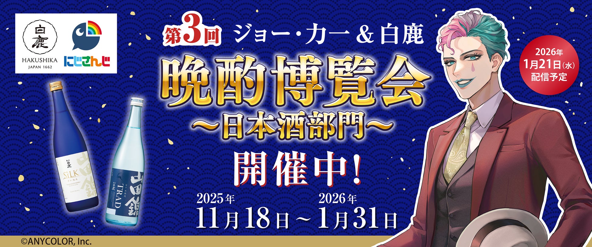 白鹿ブランドを展開する辰馬本家酒造株式会社(本社:兵庫県西宮市、代表取締役社長:辰馬清)は、弊社「山田錦シリーズ」の誕生30周年を記念し、ANYCOLOR株式会社が運営する「にじさんじ」所属のバーチャルライバー「ジョー・力一(じょー・りきいち)」とのコラボ企画、「第3回 晩酌博覧会~日本酒部門~」を開催します。