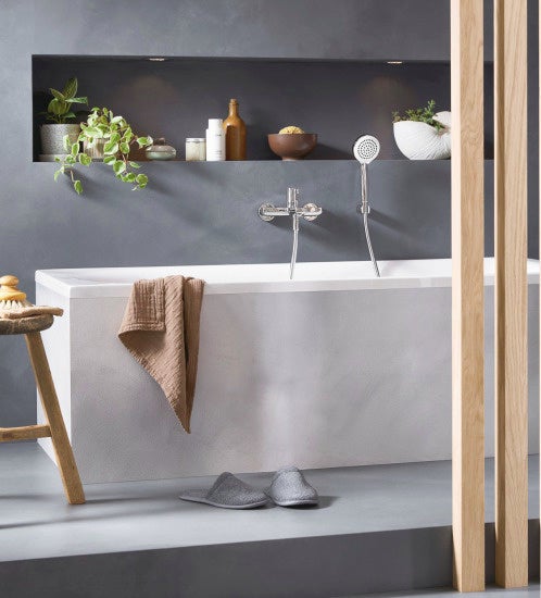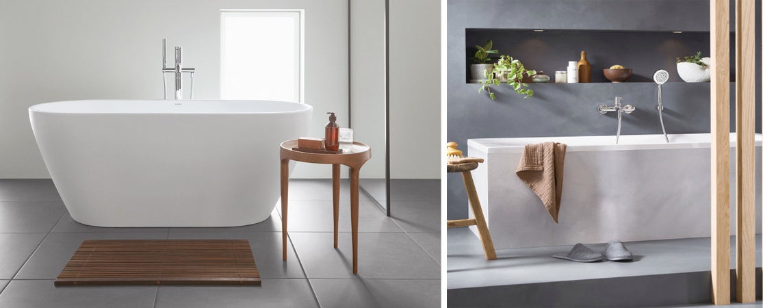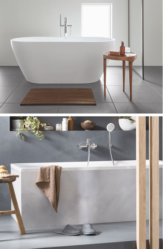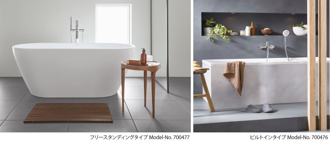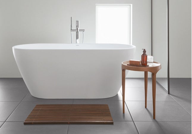バスタブは、シリーズのハイライトと言えるフリースタンディングタイプを展開。見た目も肌触りも滑らかなDuraSolid®を使用した全長1600mmのバスタブは、あらゆるバスルームのアイキャッチとなります。またアクリル製のビルトインタイプは片側にバックレスト・スロープが付いた1500x750mm~1800x800mmまでの5つのサイズのほか、両側にバックレスト・スロープが付いた1800x800mmバージョンもございます。