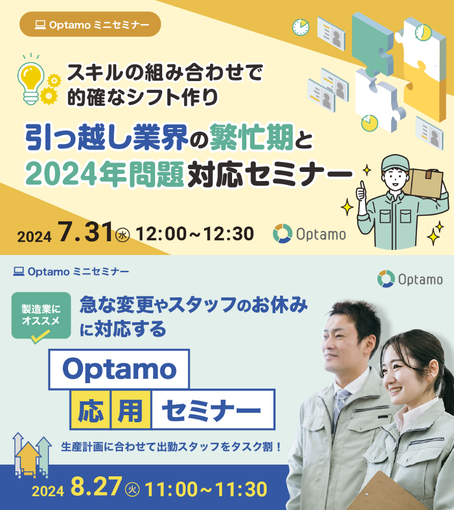 引っ越し業、製造業が抱える勤務シフトの課題に対応するOptamoミニセミナーを開催