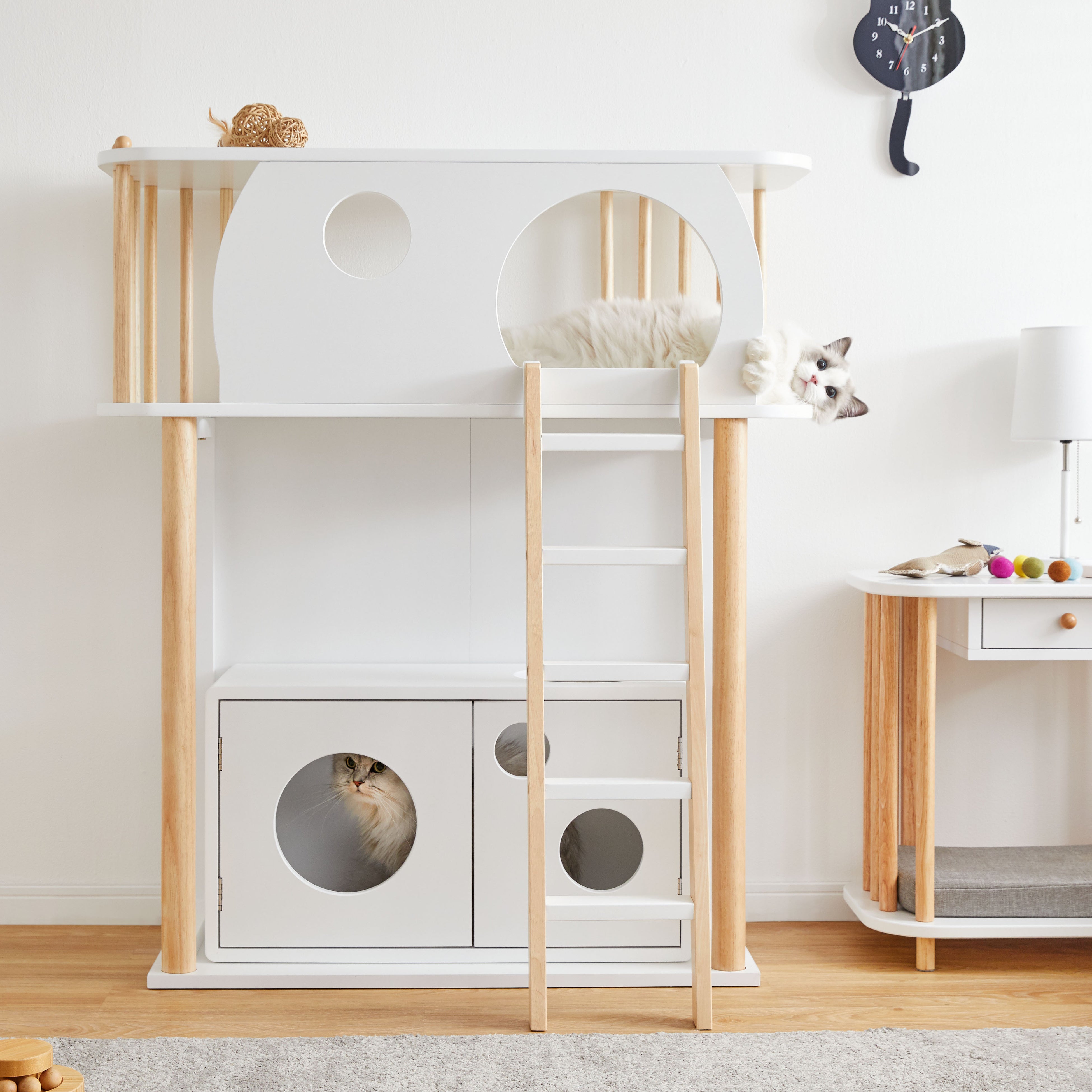 部屋の景観をお洒落に保ちつつ、猫トイレの「あるある」を解決する収納付きトイレ。用を足している猫をこっそりのぞける横穴付き。