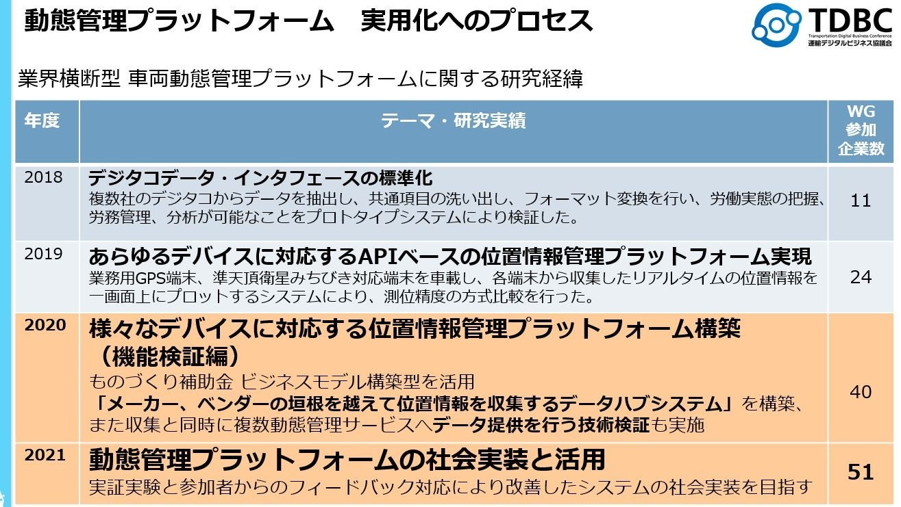 運輸事業者やデバイスメーカーの枠を越えた車両動態情報の可視化による物流DXを推進、事業会社を設立しさまざまなデバイスに対応する動態管理プラットフォームを社会実装