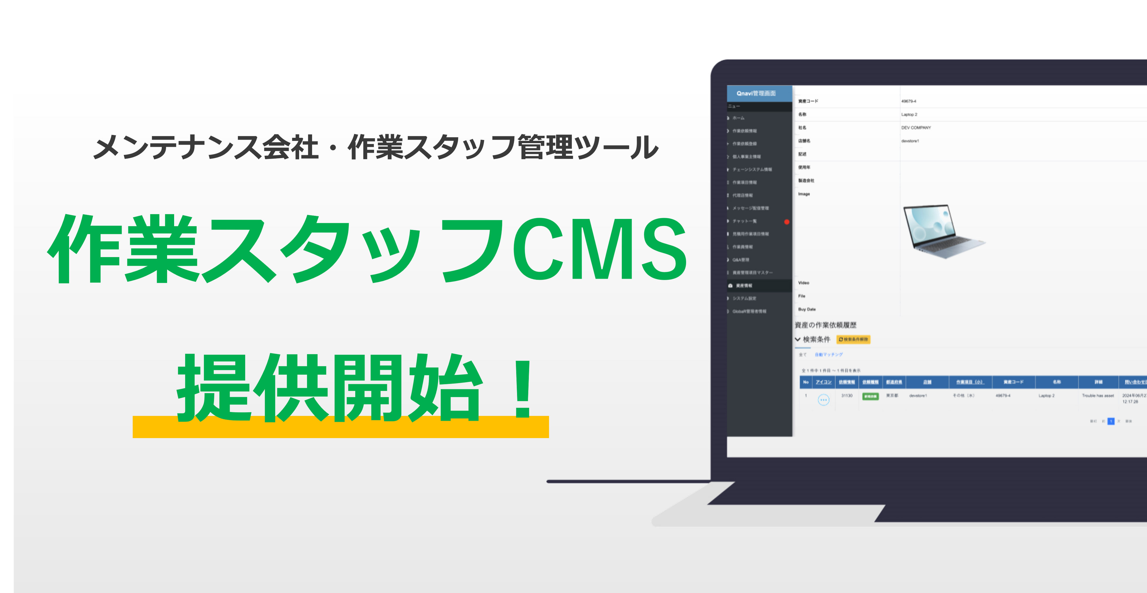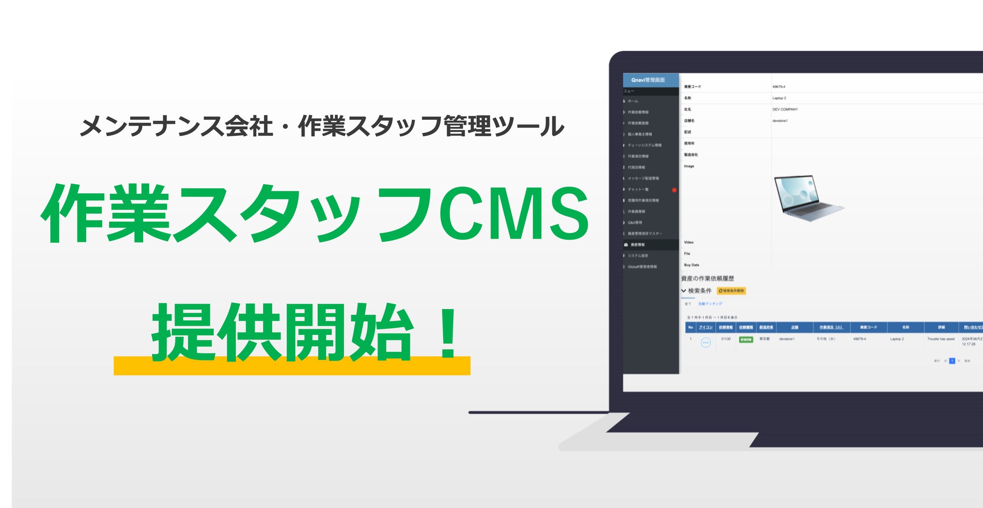 店舗トラブル解決アプリ「QナビORDER」に、メンテナンス会社・作業スタッフ向けの管理ツール(作業スタッフCMS)が導入されました!