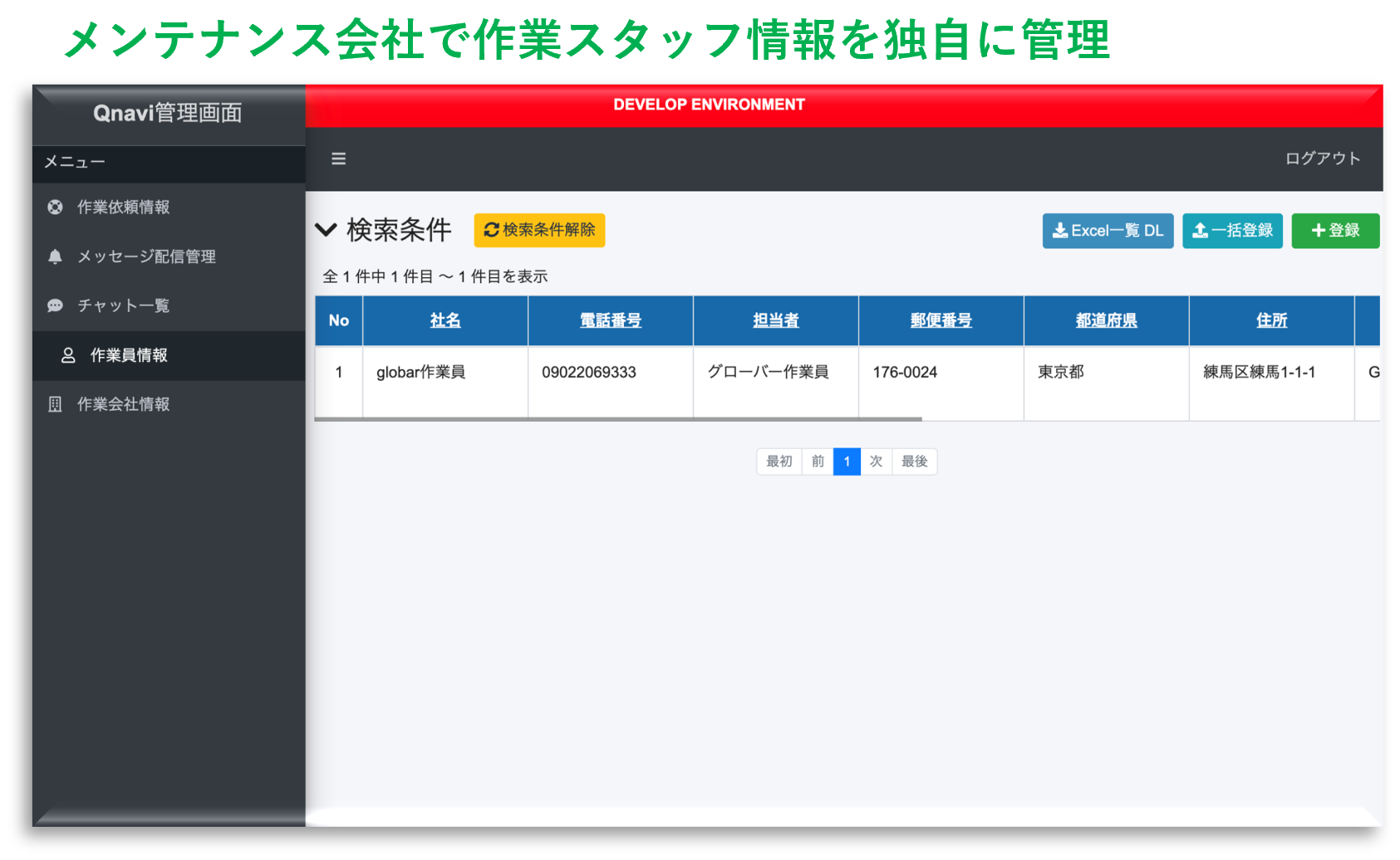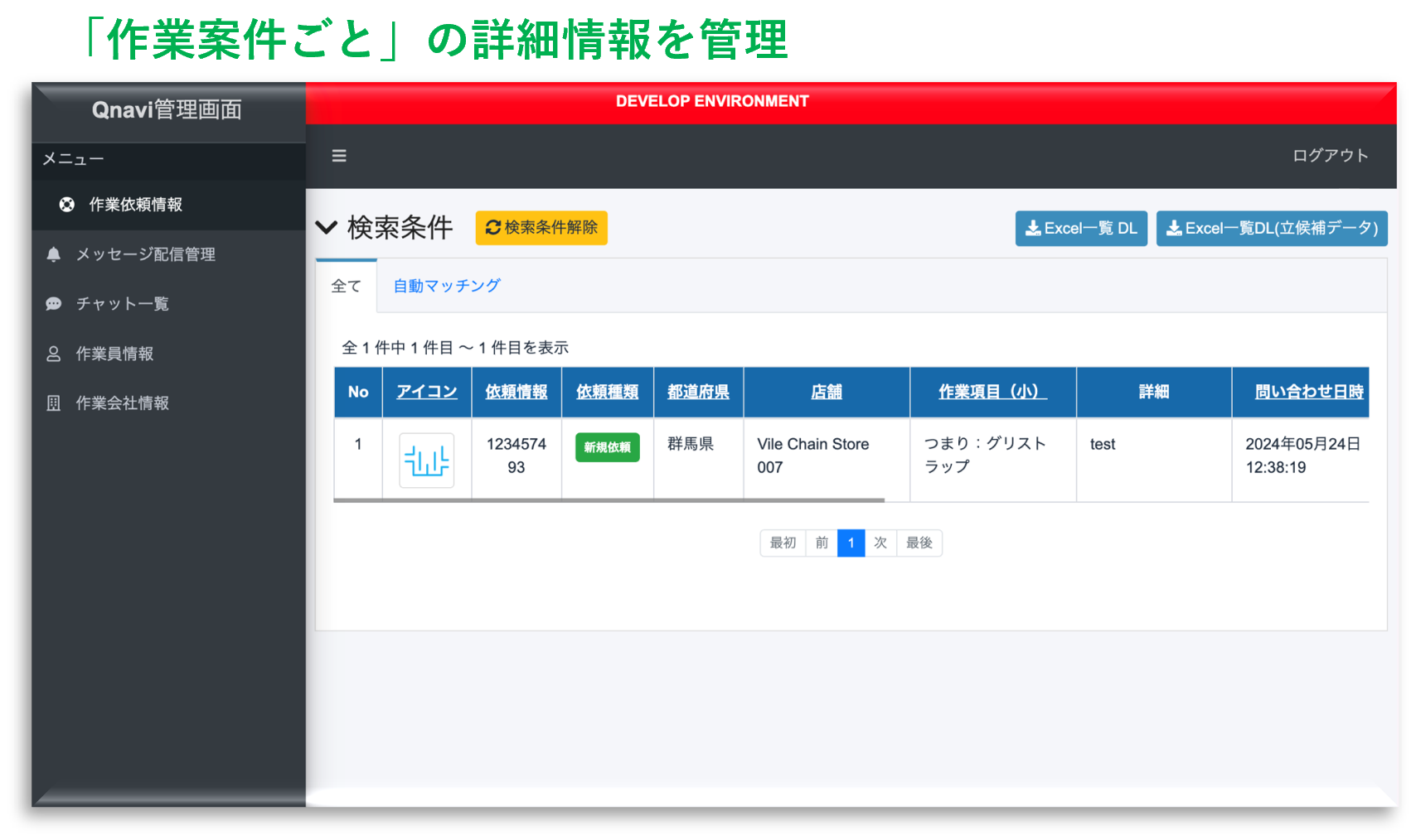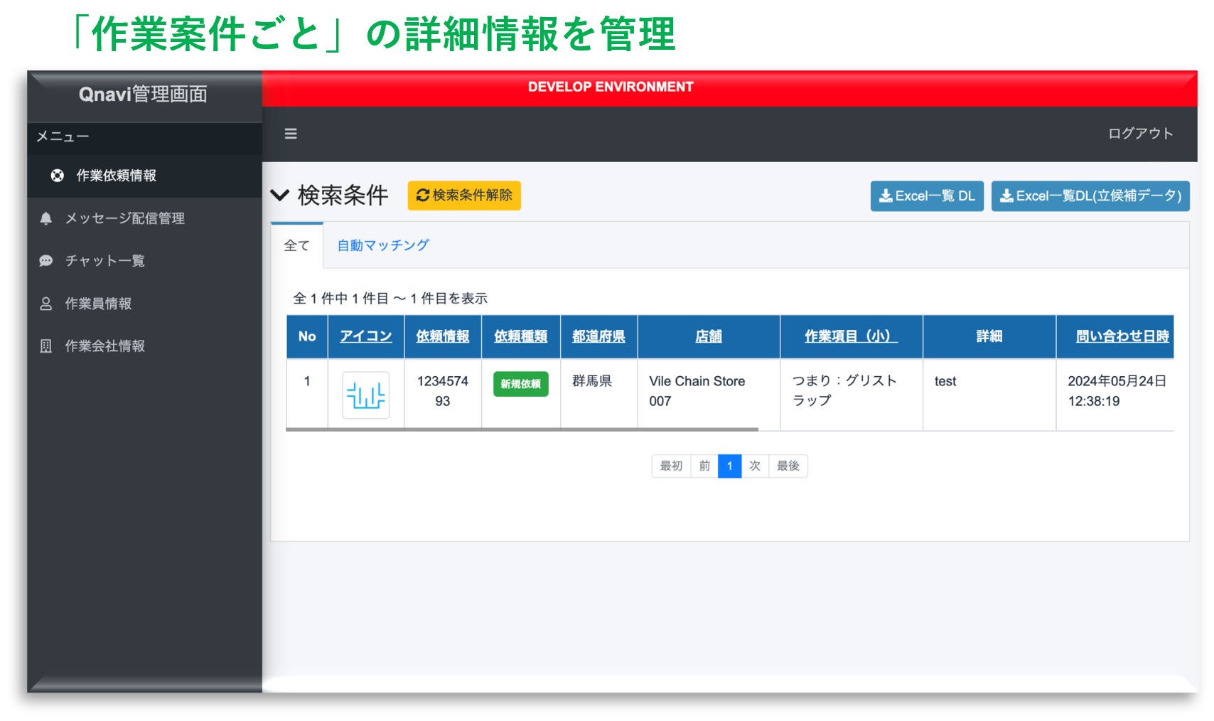 「QナビORDER」を通して店舗メンテナンスを行うメンテナンス会社・作業スタッフ向けの管理ツール(作業スタッフCMS)です。これまでメンテナンス会社、作業スタッフ側はスマートフォンのみで操作をしておりましたが、PCやタブレットでの操作や案件、仕事の管理を行うことが可能になります。