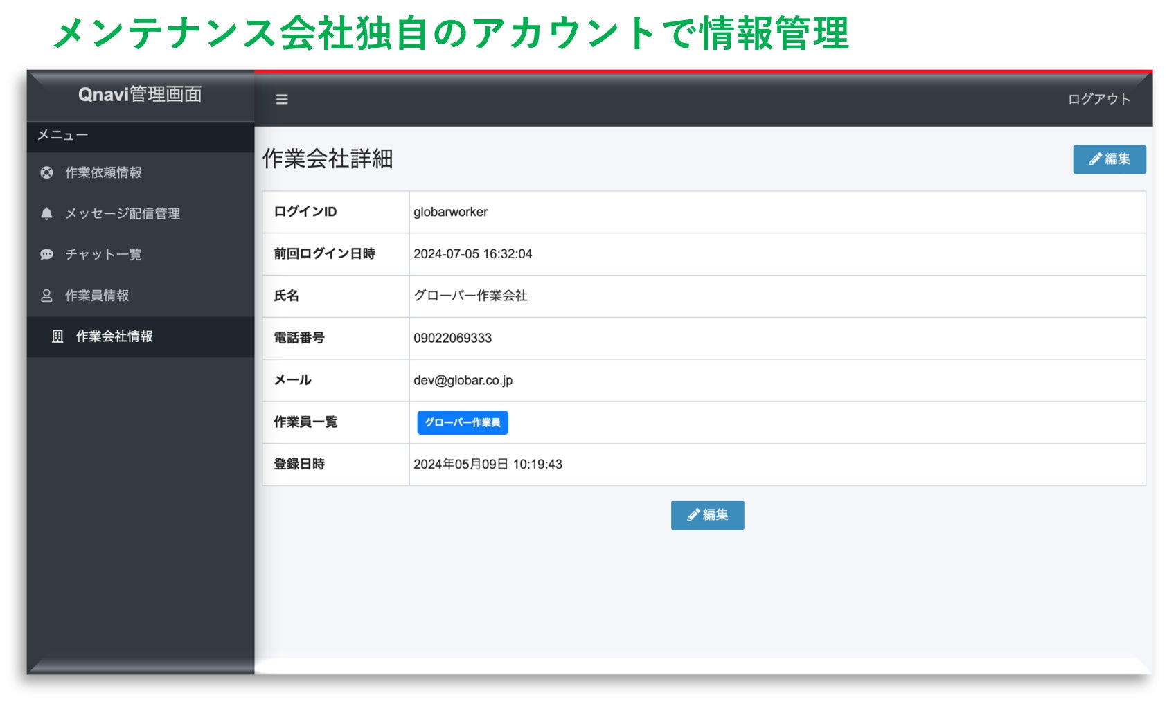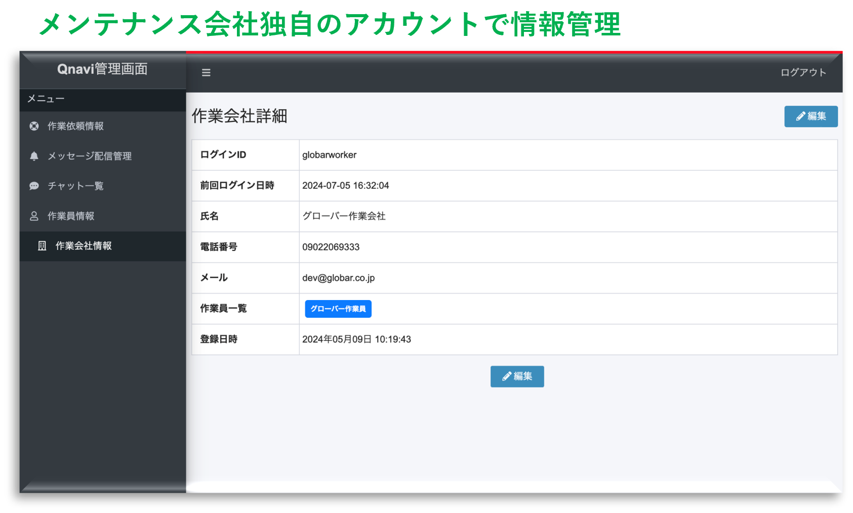 ・指定のアカウントに紐づくメンテナンスの作業スタッフを独自に管理することが可能