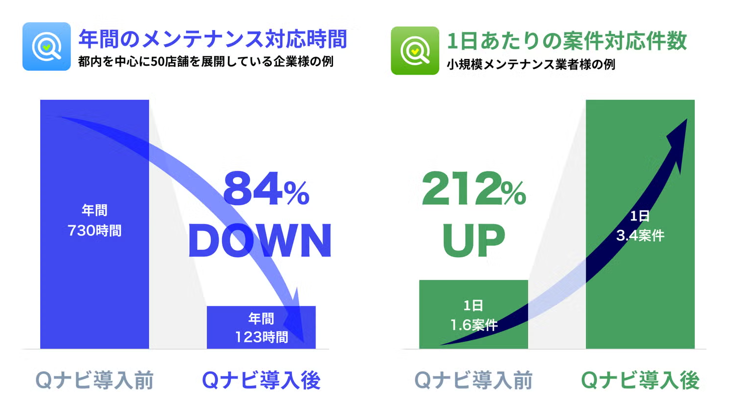 QナビORDERの導入により、店舗におけるメンテナンス対応時間が年間で84%(※2)削減された事例もあり、大幅な業務改善を実現できます。