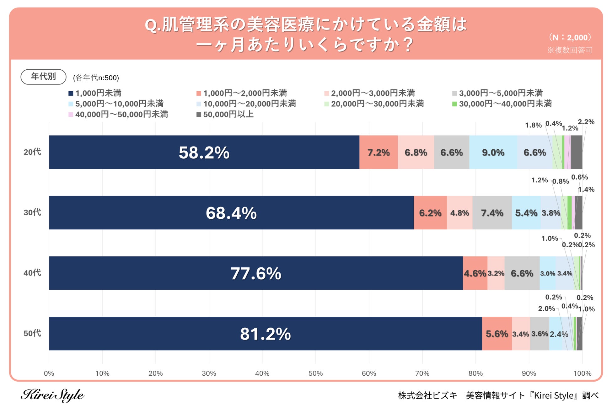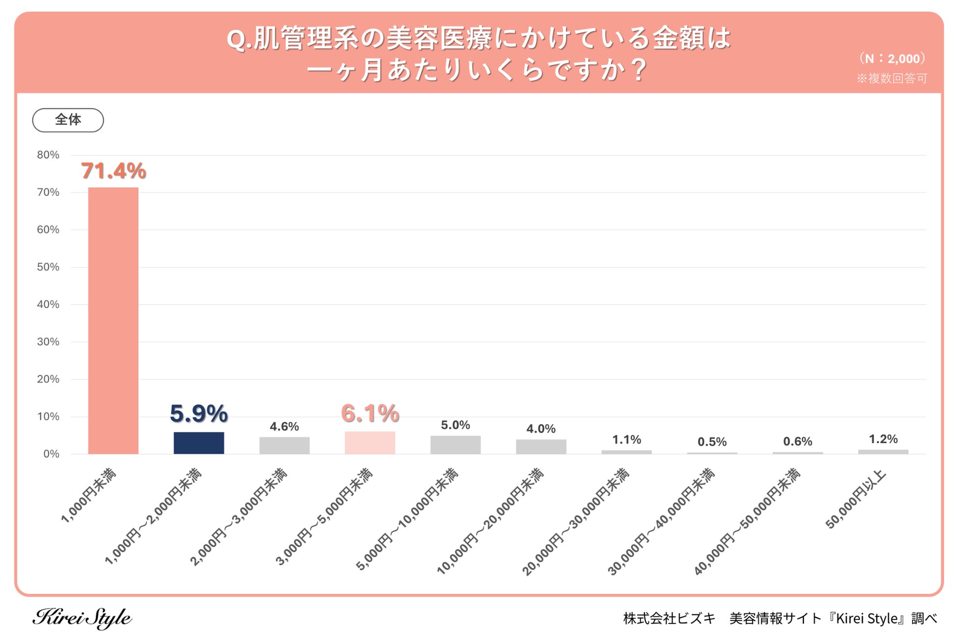 【質問:肌管理系の美容医療(フォトフェイシャルやケミカルピーリング等)にかけている金額は一ヶ月あたりいくらですか?】