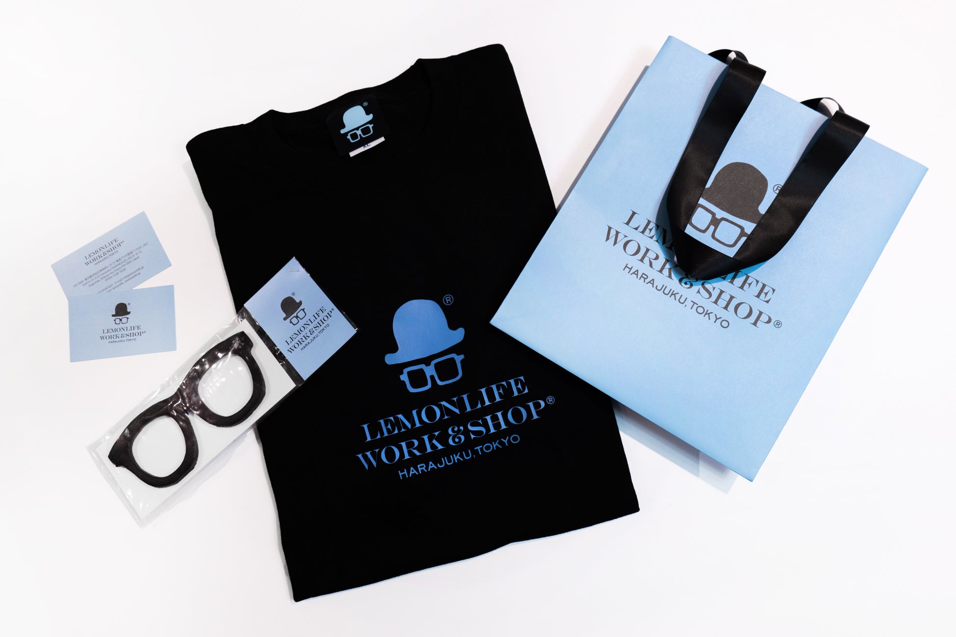 オープンを記念して、ロゴをあしらったオリジナルTシャツを販売。また、税込3,000円以上お買い上げのお客様に特典として、千原徹也のメガネをモチーフにした「HOW'z × LEMONLIFE WORK&SHOP」特別コラボ「千原メガネクッキー」をご用意しております。(※数量限定)