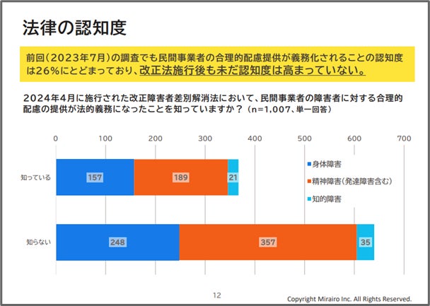 合理的配慮の提供が義務化されたことの認知度は、障害者の間でも4割に満たない