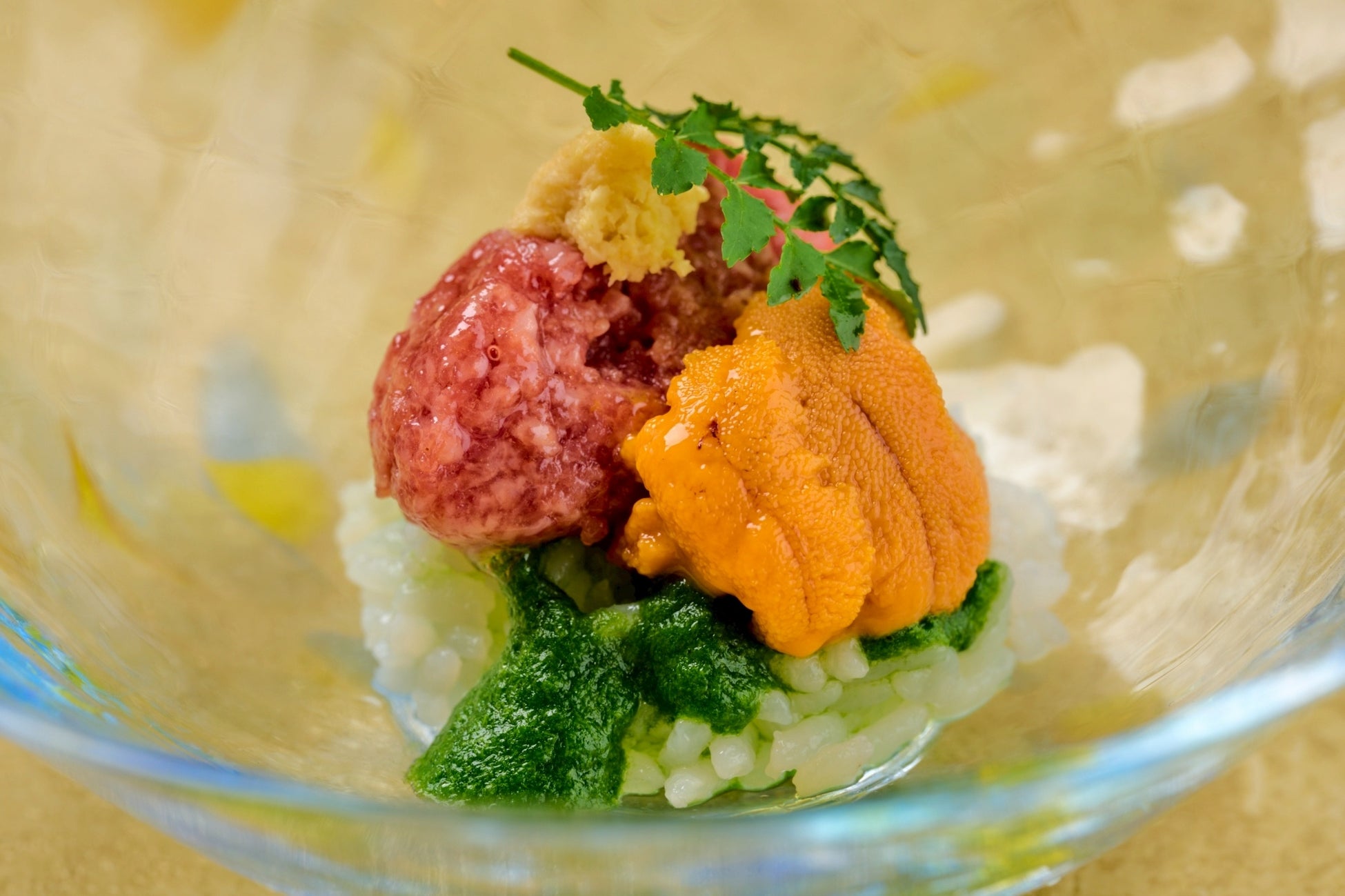 創業10周年を記念し、西麻布けんしろうの集大成ともいえる贅を尽くした特別コースをご用意いたしました。当店のスペシャリテはもちろん、厳選された最高級和牛や旬の食材をふんだんに取り入れ、目にも舌にもご満足いただける内容です。
