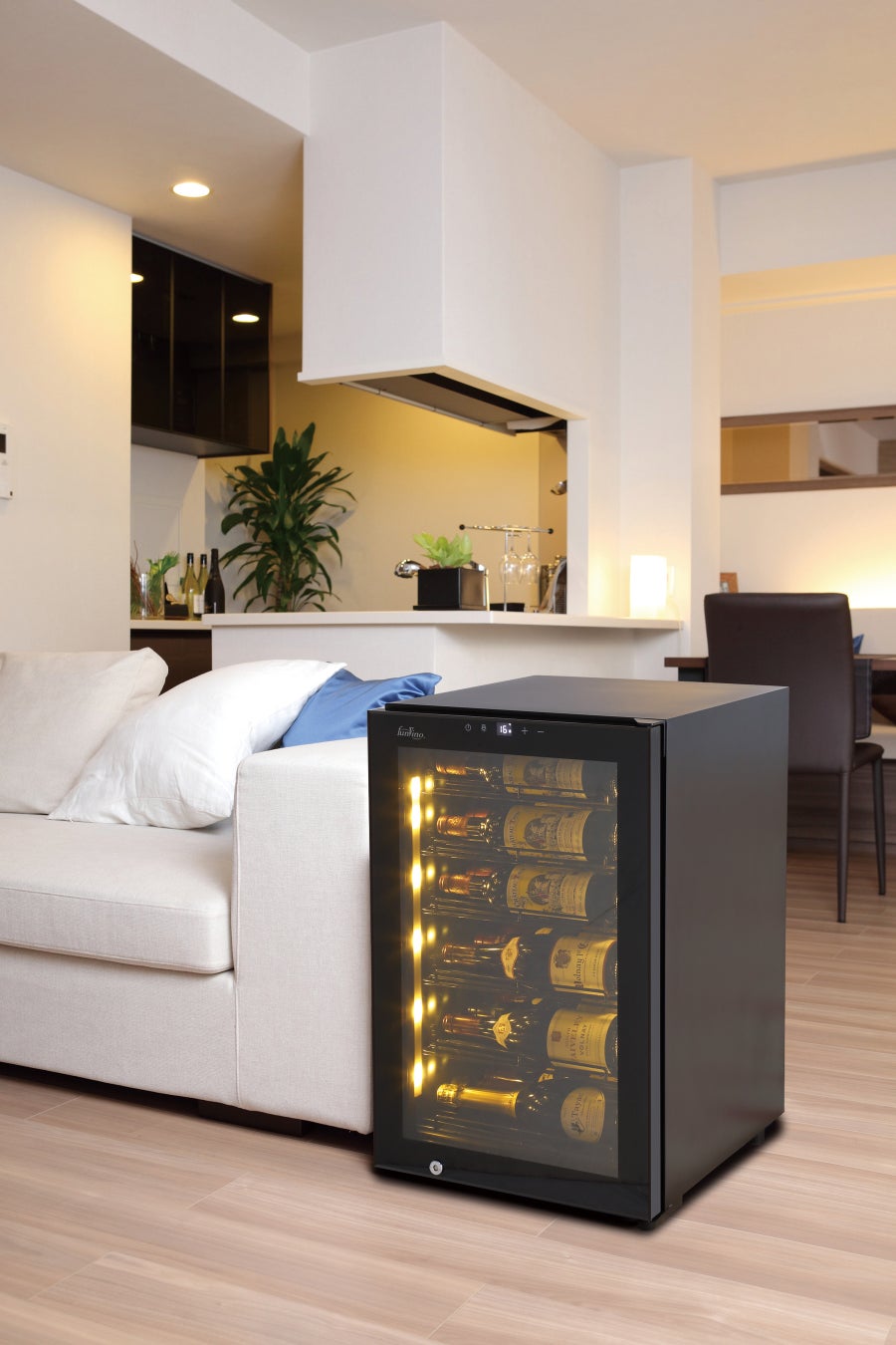 ■スタイリッシュなデザインはそのまま、“魅せる”ワインセラーの小型タイプ