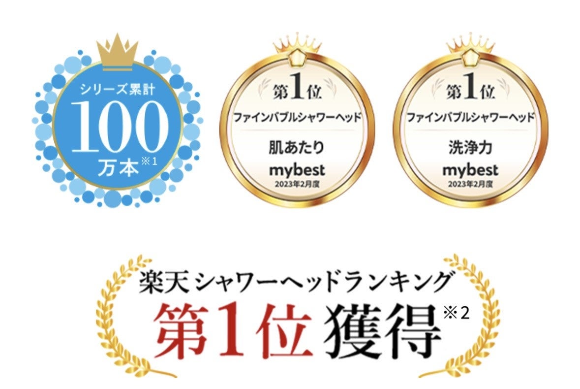 ※1 2013年4月~2022年4月ファインバブル発生機構搭載シャワーシリーズ累計出荷本数。