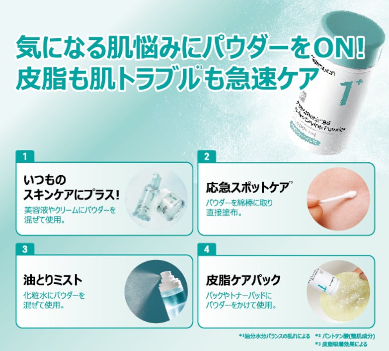 高濃縮のパントテン酸*¹を40,000ppm配合した1番パウダー。
