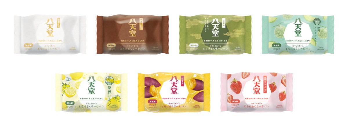 くちどけの良さにこだわって開発された八天堂の「冷やして食べるとろけるくりーむパン」シリーズを、ファミリーマート限定のオリジナルパッケージで販売中。全国の産地原料を使用し、季節感を大切にしたフレーバーが大好評。
