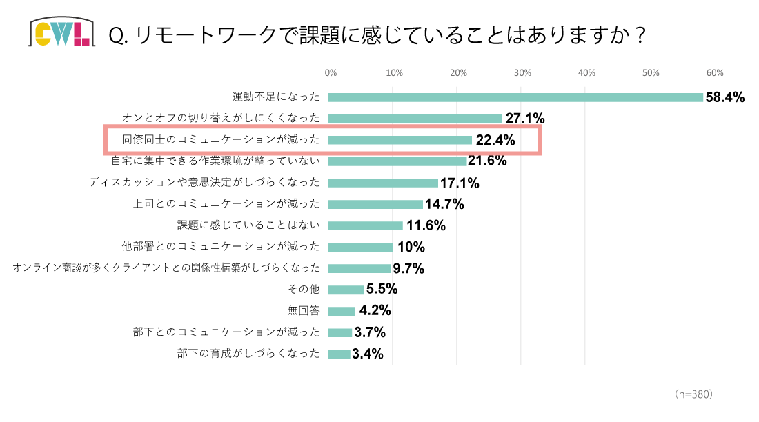 このことから、リモートワークによる社内コミュニケーションの希薄化に懸念をしているクリエイターが数多くいることが見受けられます(下図参照)。