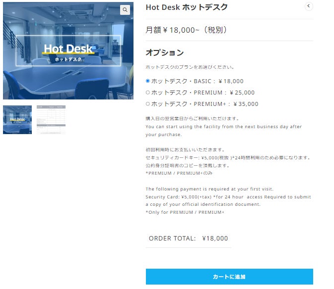 Hot Desk BASIC:¥18,000 (tax exclusive)