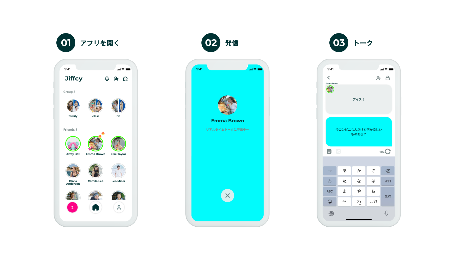 『Jiffcy』ユーザーの90%以上が学生となっており、通学や自分の部屋などの通話しにくい環境で使われるなど、Z世代およびα世代の女性から強い支持を受けています。また、100ヶ国以上にユーザーがおり、世界中の多くのシーンで使われています。