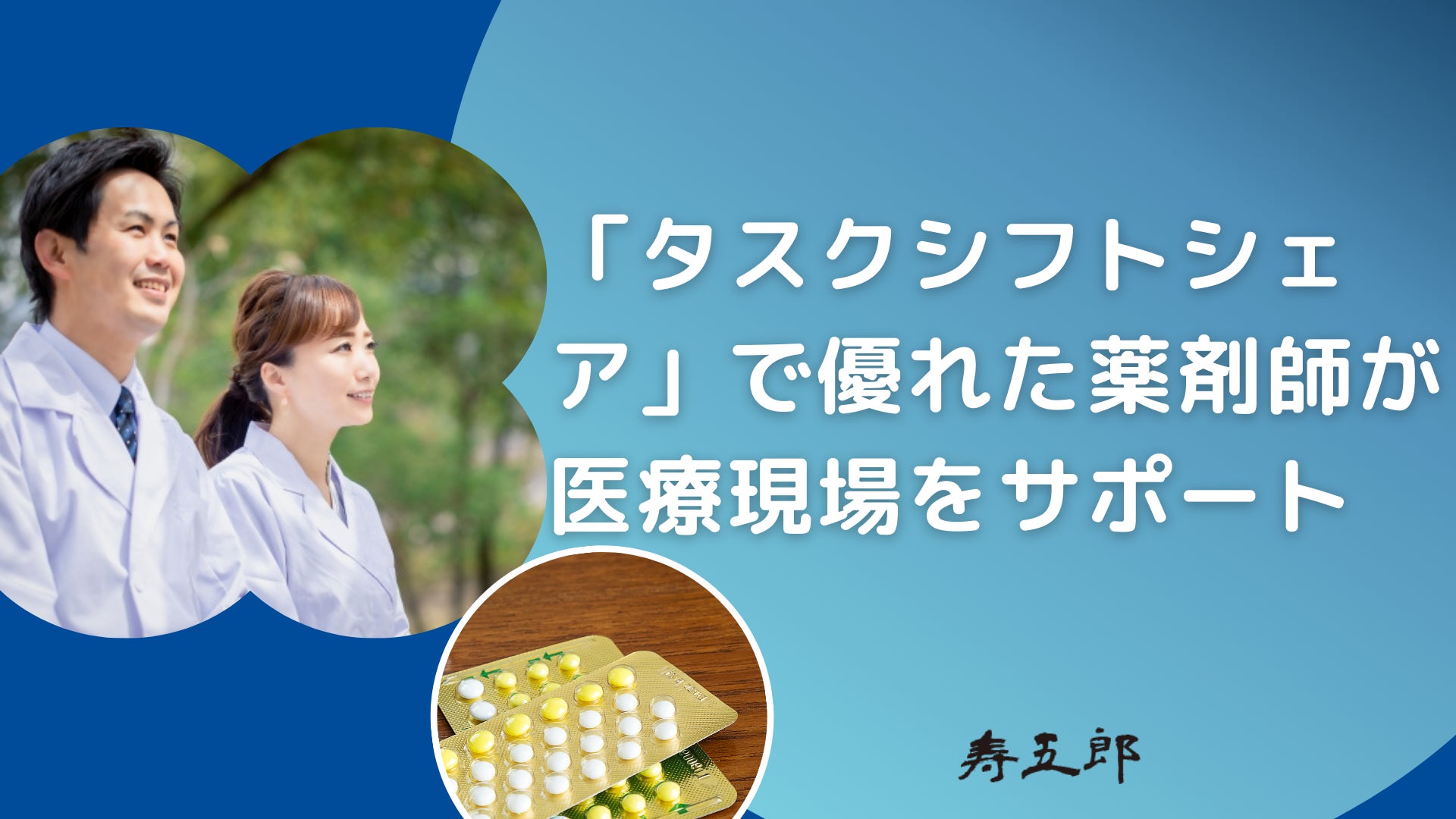 薬剤師に特化した人材紹介・採用コンサルティング事業を行う株式会社寿五郎(本社:東京都豊島区、以下「寿五郎」)は、本日、令和6年4月から施行される、「医師の働き方改革」において、高度な専門知識を習得している薬剤師の人材紹介を強化し、「タスクシフトシェア」を中心とした医療現場全体の働き方体制の整備に貢献することを発表いたしました。