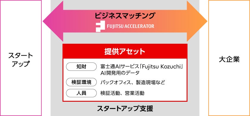 加えて、AIサービス「Fujitsu Kozuchi」をスタートアップへ提供するほか、データ整備、検証支援な ど、スタートアップの生成AI活用を促進します。