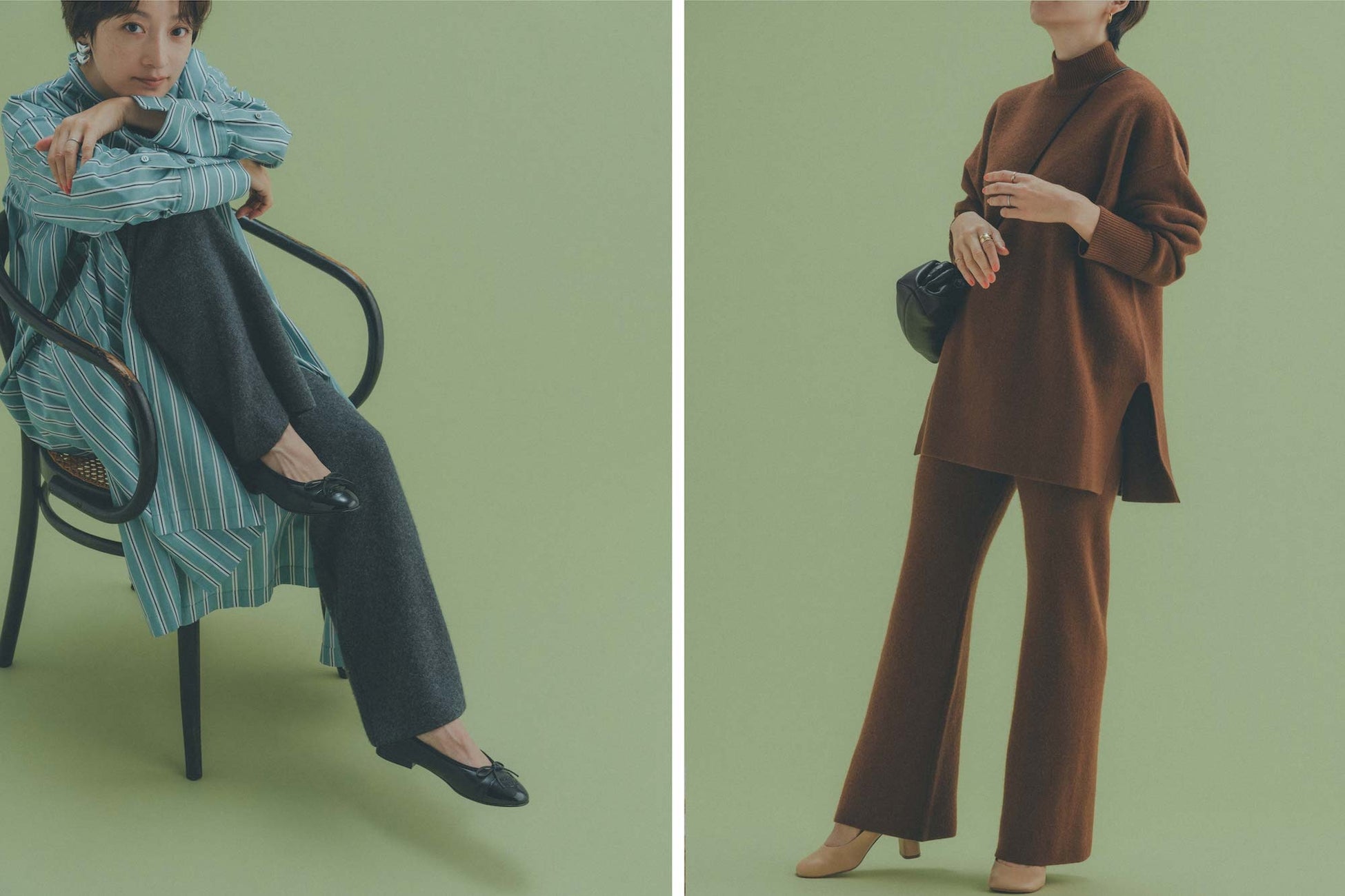 【MIYAKO's comment】ニットパンツは冬のいちばんの相棒。上品なスエット感覚で、毎日はきたいほど暖かくて楽ちんなのに、大人っぽさも出る。程よいワイドシルエットにすることで、ヒールにもフラット靴にも合わせやすいし、脚長効果も期待できます。ボディラインを拾わない肉厚な素材感を大事にした、大人のための一枚。