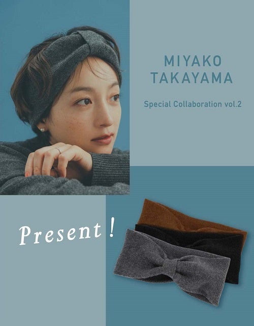 コラボレーション第2弾のスペシャルアイテムの発売を記念して、店舗・オンラインショップにて対象アイテム( タフタトレンチコート、カシミヤ混スムースニットシリーズ) より、55,000 円(税込)以上お買い上げのお客さまには、オリジナルニットターバン(Special Collaboration のカシミヤ混スムースニットシリーズと同素材)をプレゼント。
