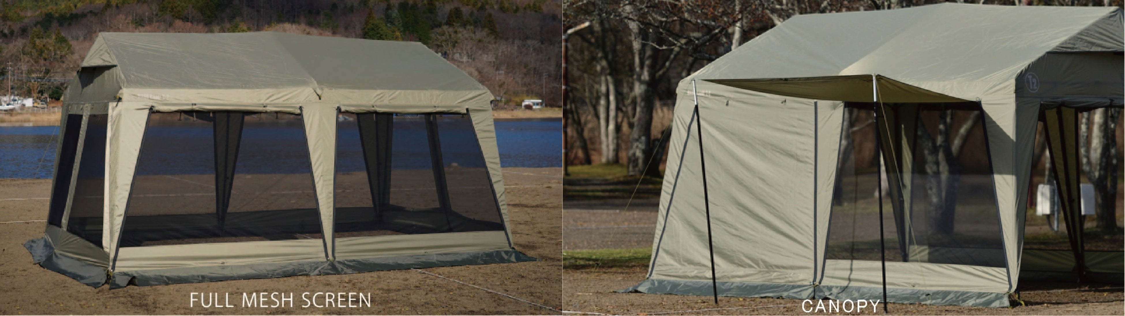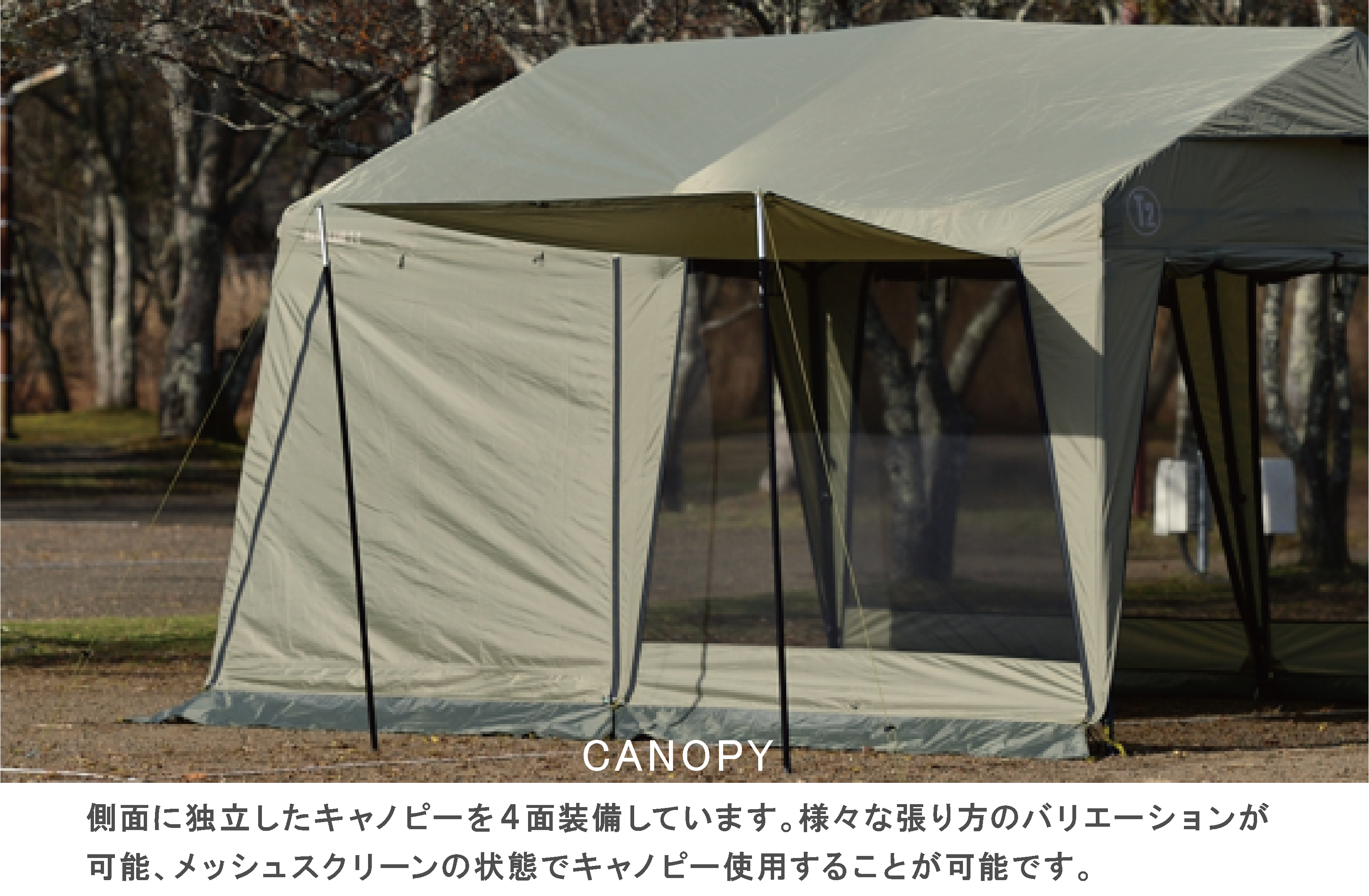 「セレクタブルテントユニット」となっており、2サイズのフレームで好きな幕をカスタムしていただけるのも魅力。
