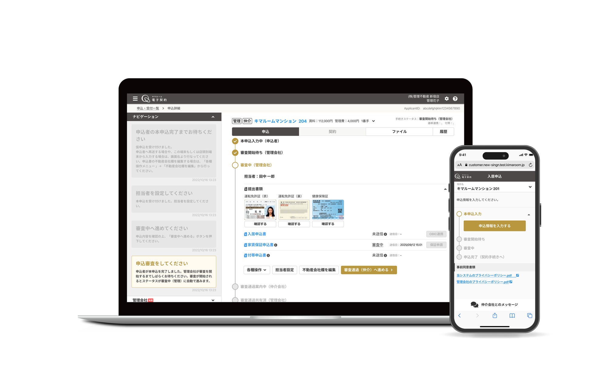 ②管理画面上で入居者・関係者とチャットでやりとりしながら申込・契約の操作が可能