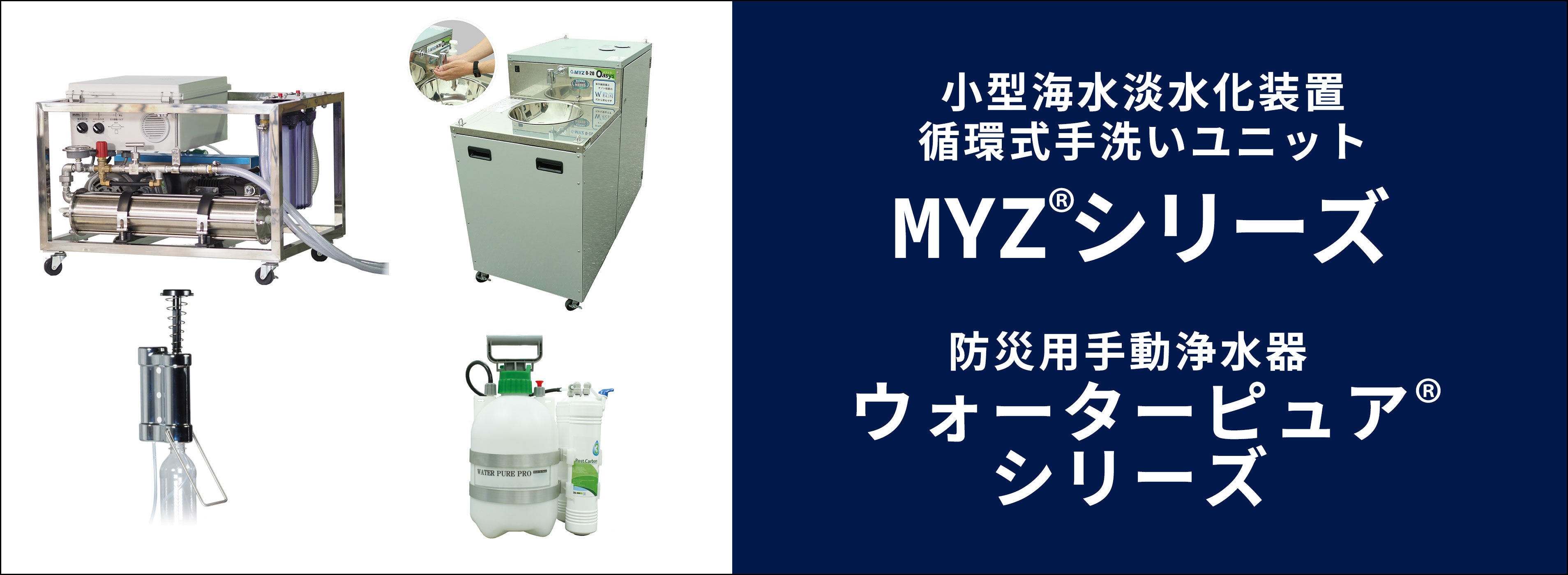 Waquaでは、独自技術で実現した家庭用電源100Vで稼働し、海水や河川水、池などの水も真水にできる高性能の『小型海水淡水化装置』MYZ® E-60/E-250、給水の手間を大幅に削減する『循環式手洗いユニット』MYZ Oasys®、川、池等の水を素早く浄水できる電源不要の『防災用手動浄水器』ウォーターピュア®シリーズなど、水の問題を解決する様々なラインナップを取り揃えている。