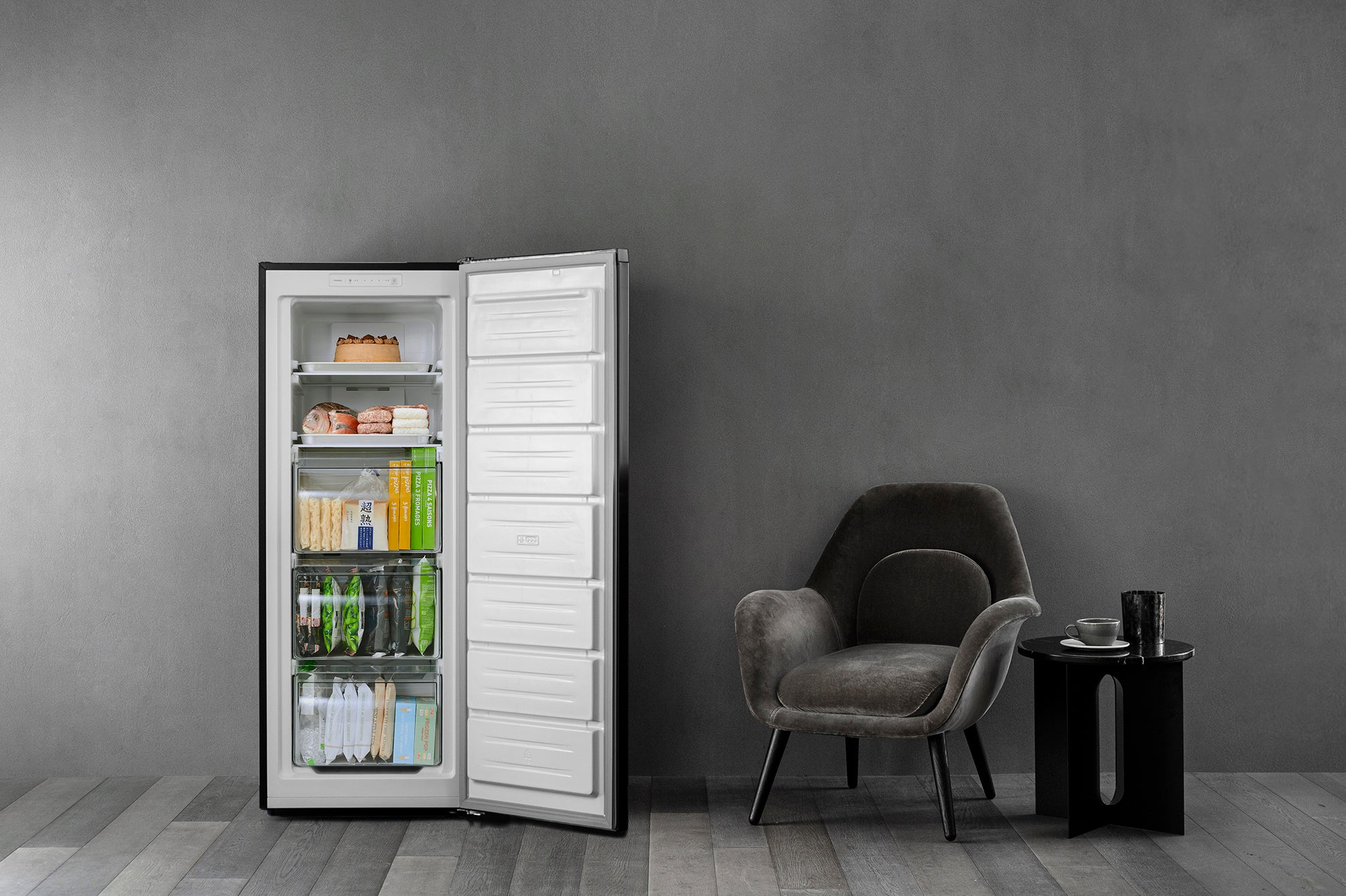 「冷蔵庫や冷凍庫は、こまめに電源を切る事ができないから電気代が気になる…」そんなお客様の声にお応えし、最高クラス※1の省エネ達成率を実現しました。長く使う家電であり、また、電気代が高騰する昨今に嬉しい仕様の冷凍庫です。メタリックブラックの上品なデザインで、キッチン以外の場所に置いてもインテリアに調和します。霜取り不要のファン式で、面倒なお手入れは不要です。