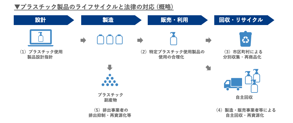 そのような中、プラスチック使用製品の「設計・製造」「販売・提供」「排出・回収・リサイクル」といったライフサイクルに関わる事業者・自治体・消費者が相互に連携しながら、プラスチックの資源循環に向けた取り組みを促進しようと、2022年4月1日に「プラ新法」が施行されました。