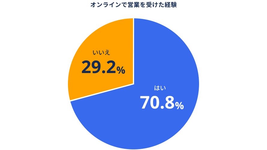 70.8%の方が、ZoomやTeams, Google Meetといったオンライン会議ツールで営業を受けた経験をお持ちでした。