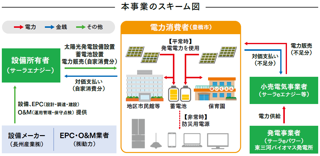 サーラエナジーは、サーラコーポレーショングループ(呼称:サーラグループ)の総合⼒を活かして同市の「ゼロカーボンシティとよはし」実現をサポートするとともに、今後もさまざまなパートナーとの協業のもと、太陽光発電や蓄電池などの分散型エネルギーリソースを活⽤したカーボンニュートラルの推進をサポートしていきます。