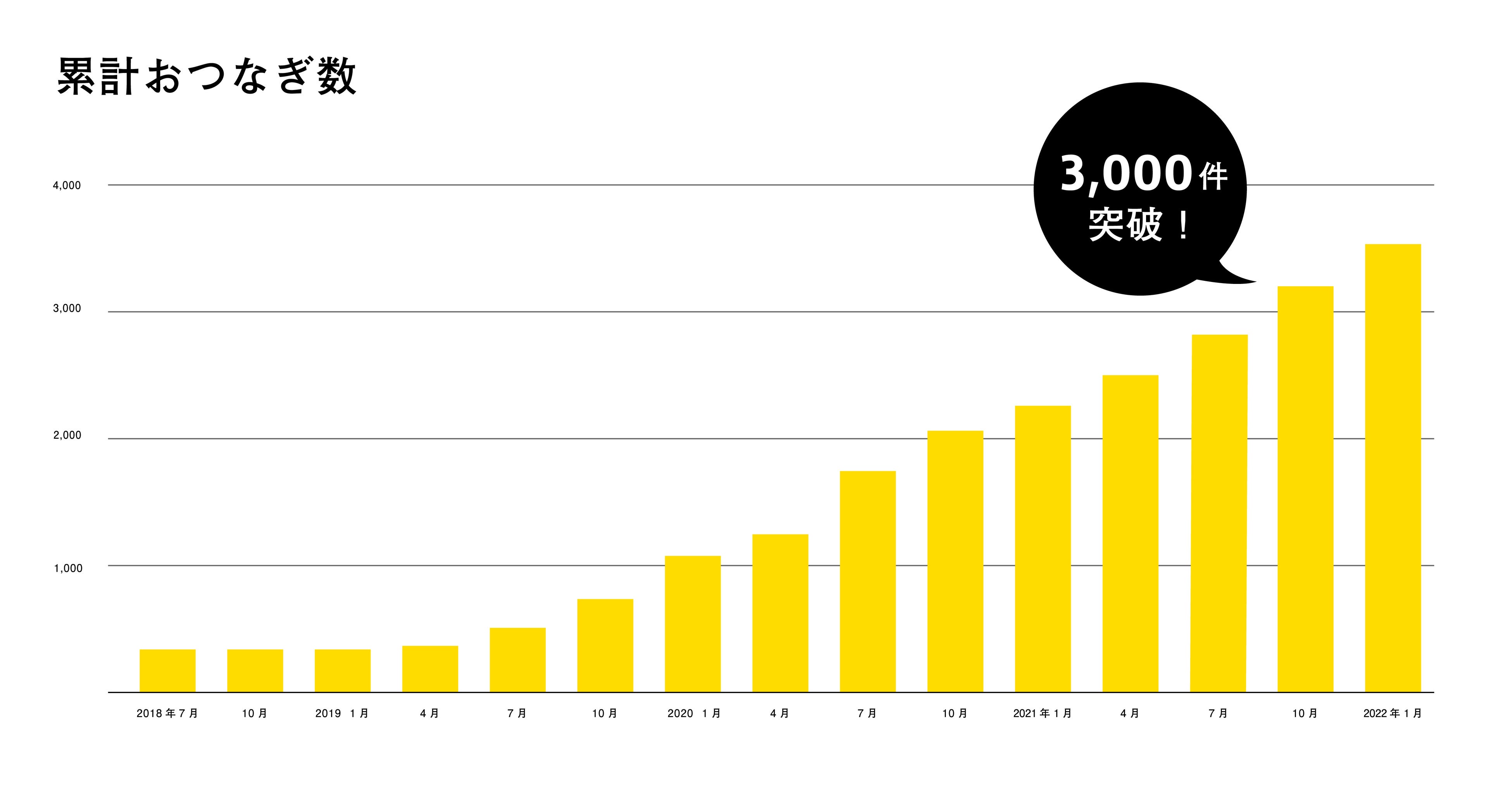 私達のサービスの登録ユーザー数は2022年1月20日現在4,343名ですが、その登録ユーザーのつながりから該当する方を探すため、見つからない方はほとんどいない実感を持っており、紹介充足率は95%を誇っています。