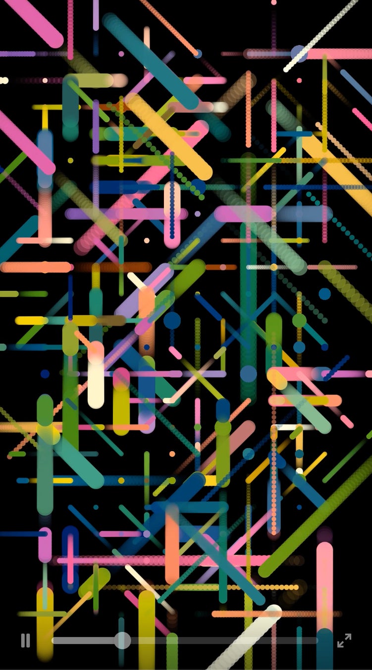 seohyo作「Tracing the City Lights」は、夜の都市の光の輝きを想起させる色彩のグラデーションを持つ円形が、水平・垂直・対角線方向に移動する軌跡を描き、動的で生き生きとした都市のエネルギーと活力を視覚化した作品です。