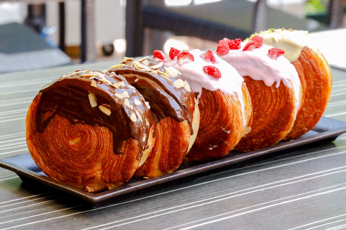 クロワッサンの進化系!クロワッサン生地は贅沢にフランス産発酵バター使用しています。ロール状に焼いたサクサクのパンの中にクリームがたっぷり入った見た目もかわいいクロワッサンが登場です。
