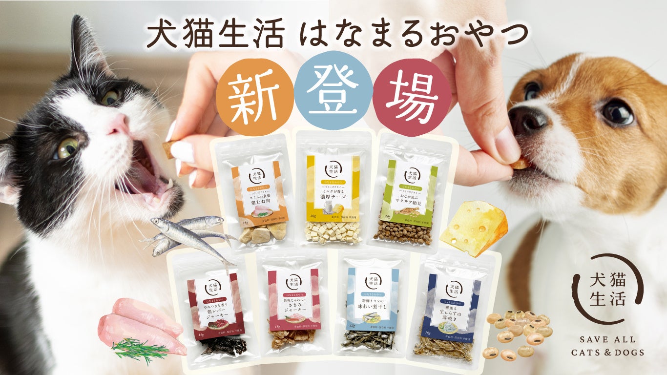 「全ての動物とその家族の幸せの生活のために。」を理念に、国産・無添加(※1)のプレミアムペットフードの販売をはじめとしたペットケア事業を展開する犬猫生活株式会社(本社:東京都新宿区、代表取締役:佐藤淳、以下犬猫生活)は、2024年7月下旬より、犬猫用のおやつ7種「はなまるおやつ」を販売開始しました。