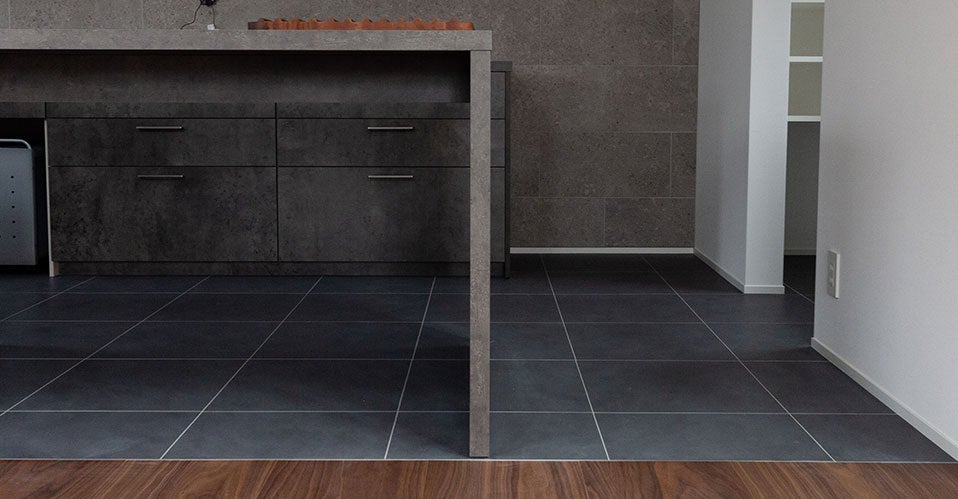 水回りにフローリングはちょっと心配という時に磁器質タイルよりも手軽に採用しやすいのがビニルタイルです。また、LDKなど大きな空間でもキッチンだけワンポイントで使うことで遊びがあるメリハリのある空間にすることができます。