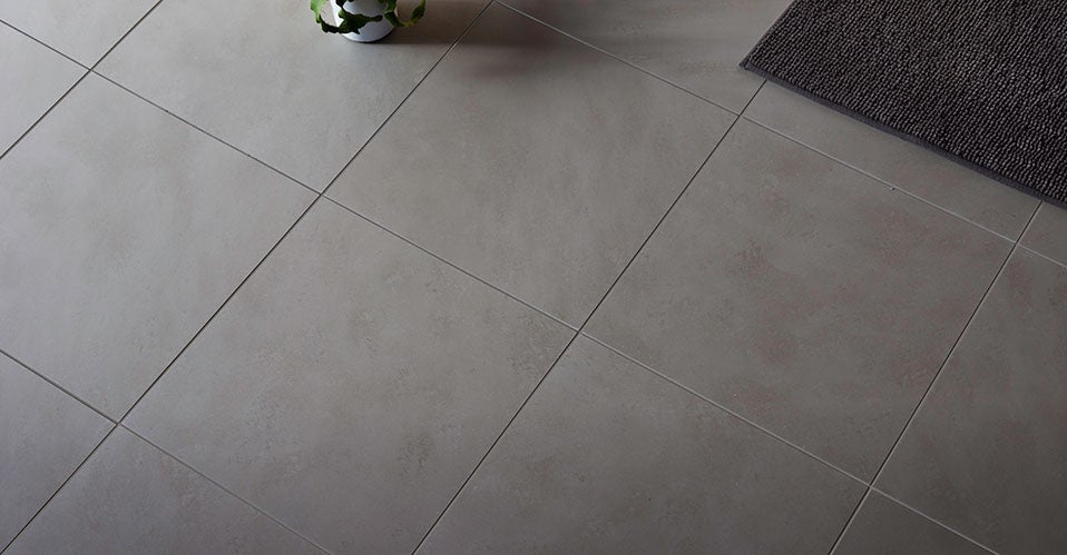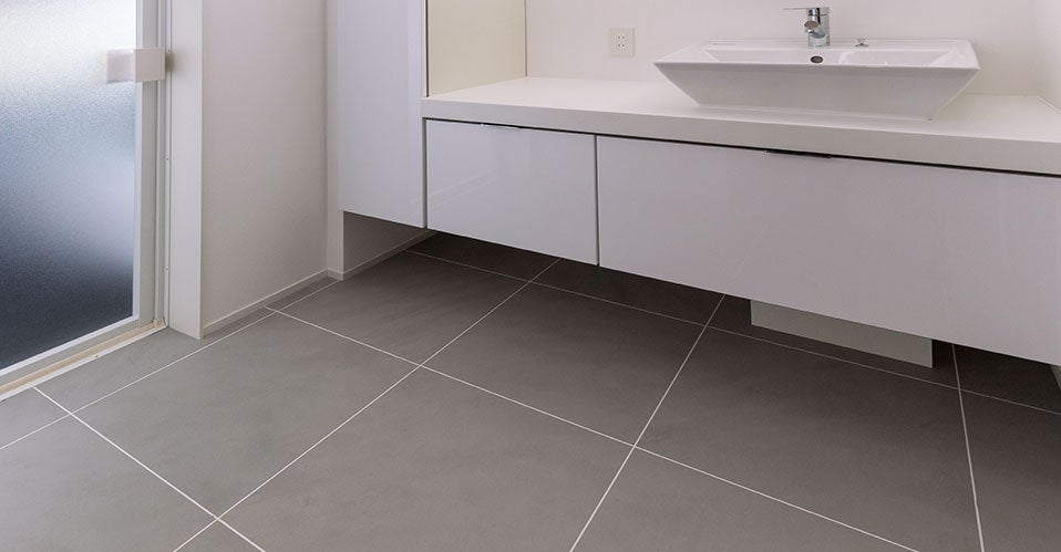 サイズは450角。あえて目地を入れることでタイルらしさを感じることができます。一般的な磁器質タイルの300角よりも一回り大きいことで、空間に広がりを感じるはずです。
