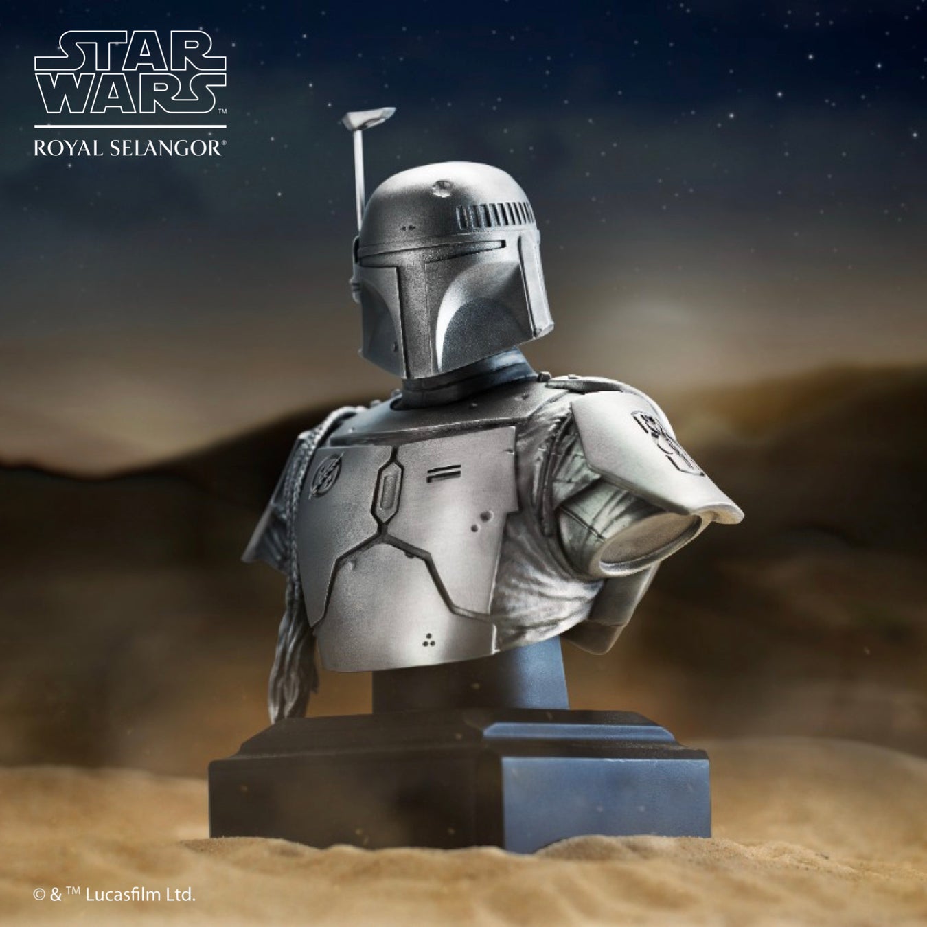 ロイヤルセランゴールSTAR WARSコレクションに“銀河一の賞金稼ぎ”ボバ・フェットが世界限定スタチューとなって新たにラインアップ。マンダロリアン・アーマーを纏い、スレーブIを駆って銀河を駆けめぐる孤高の請負人。伝説のボバ・フェットをピューターの造形美がシンボリックに再現します。手作業による鈍色仕上げやアーマーの緻密な造形、そしてヘルメットの細部に至るまで。こだわり抜かれた質感はまさしくファン垂涎のマスターピースとなっています。