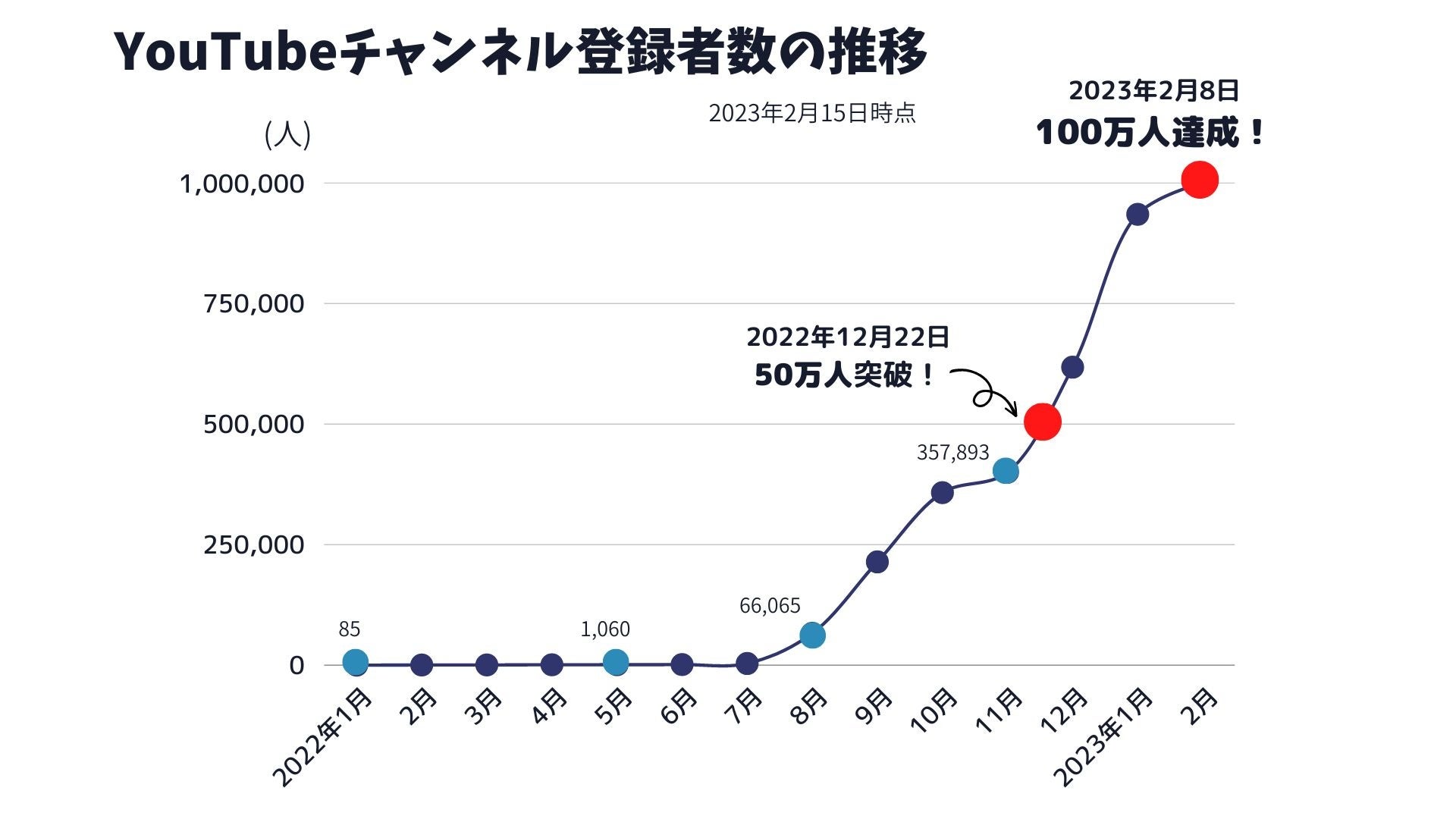 - YouTubeを開始後ショート動画を毎日投稿、わずか約1年で100万人登録者数達成