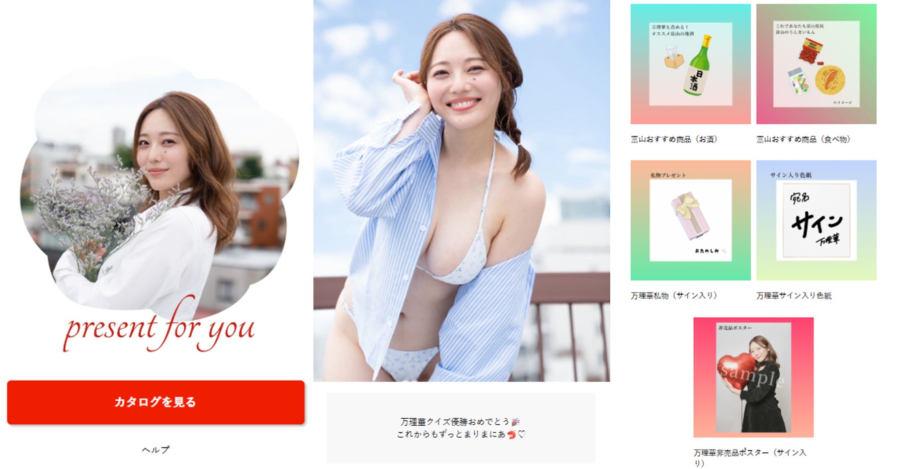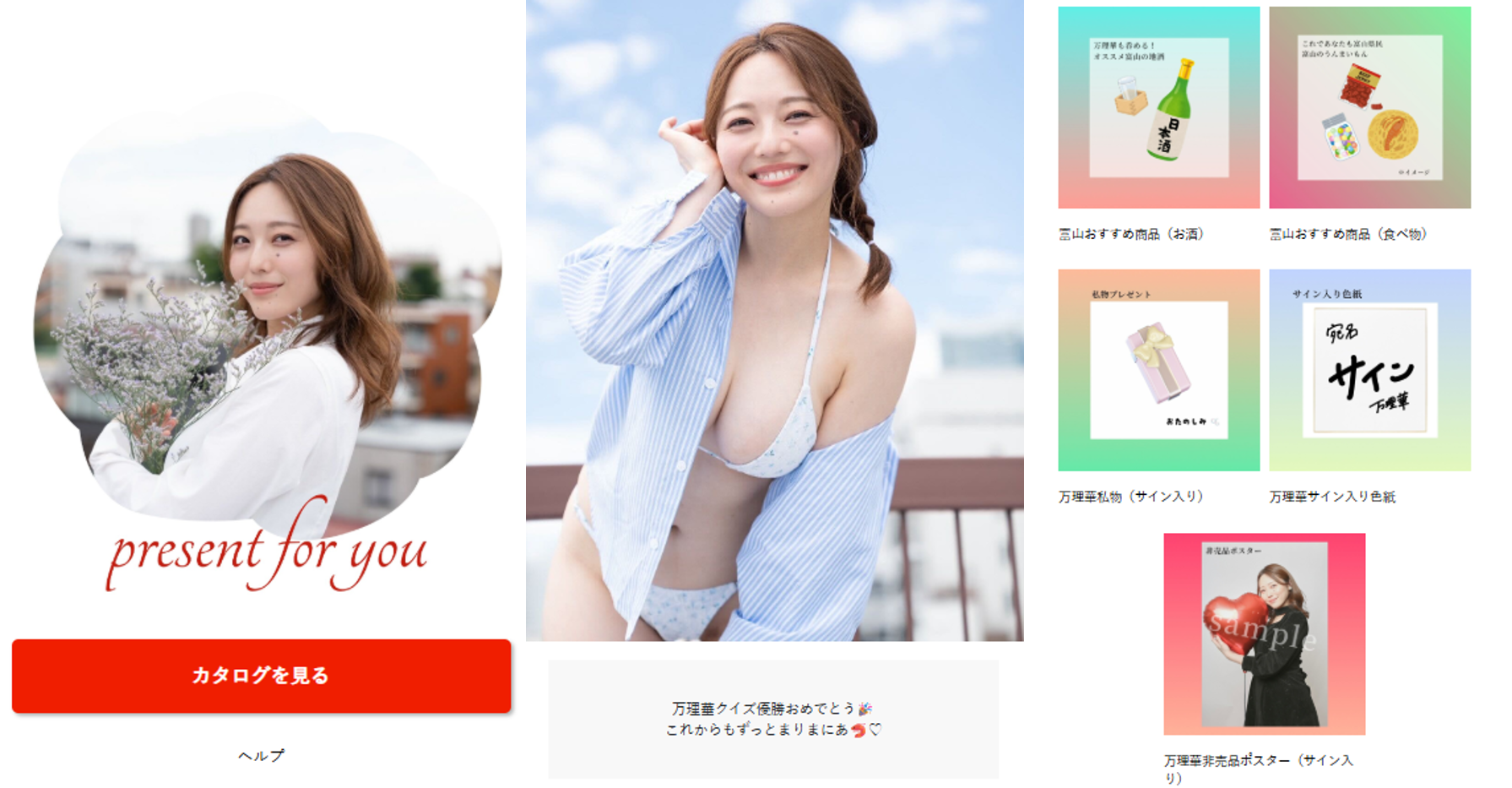 カタログには、万理華さん自身のオリジナルグッズに加え、出身地である富山県のグルメやお酒などを掲載しました。