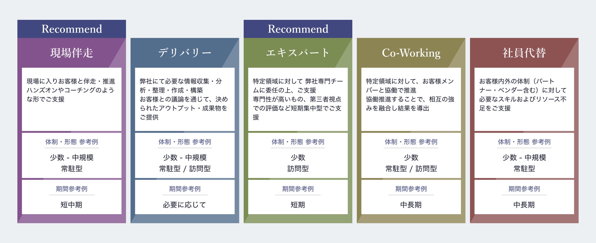 お客様の状況・ご要望に合わせて支援スタイルを選択の上、サービスを提供します。