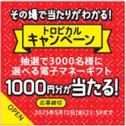 青果の総合流通企業の株式会社ファーマインド(本社:東京都千代田区、代表取締役社長:堀内達生)は、2023年3月20日(月)より、選べる電子マネーギフト1,000円分が3,000名様に当たる『その場で当たりがわかる!トロピカルキャンペーン』を実施いたします。