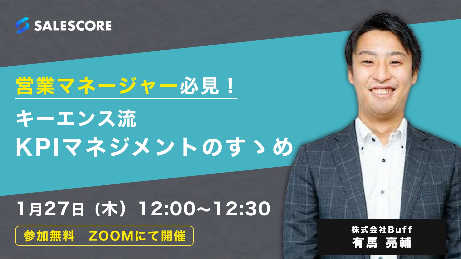 営業組織向けSaaS「SALESCORE(セールスコア)」および営業組織向けプログラムを提供する株式会社Buff(バフ、本社:東京都渋谷区、代表取締役社長:中内崇人、以下「当社」)が、営業組織作りに関する無料ウェビナーを、2021年1月27日(木)12時00分より実施します。