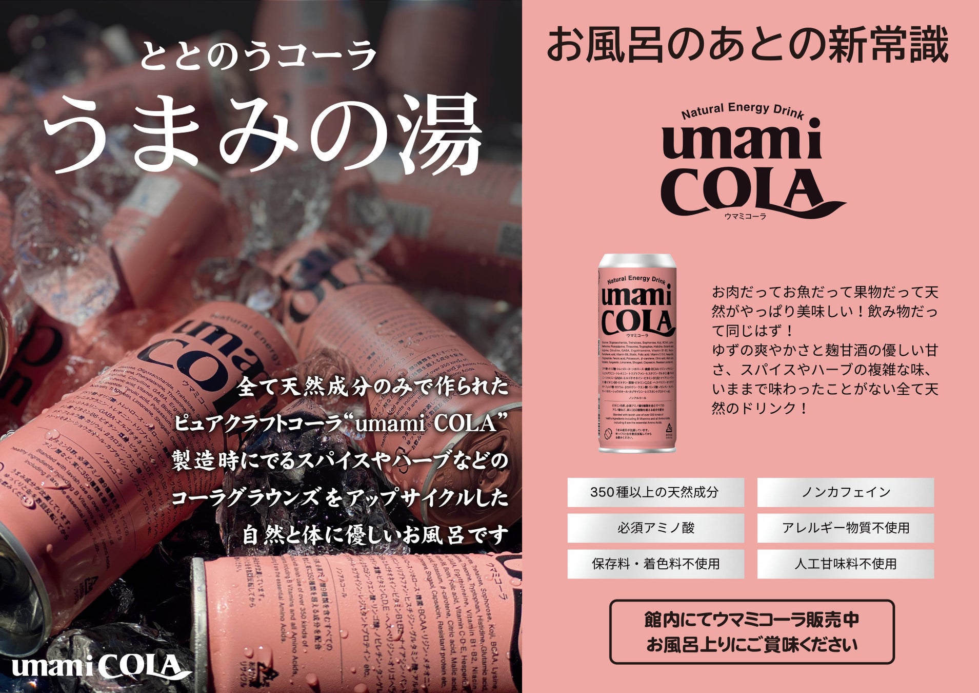 お風呂あがりにはフロント販売中のumami COLAで喉を潤してください!
