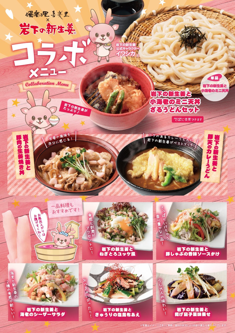 各店お食事処にて11月11日(月)~12月1日(日)まで「岩下の新生姜」を使用したコラボメニューを期間限定販売!