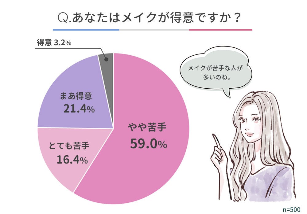 メイクに苦手意識をもっている女性が圧倒的多数となりました。