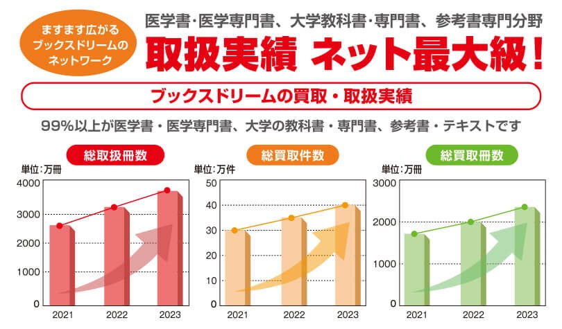当社は、医学書・医学専門書・参考書・専門書・大学教科書・予備校テキスト・教材を専門に全国から宅配買取を行い、ネット通販で販売しており、2024年で創業15年目を迎えました。