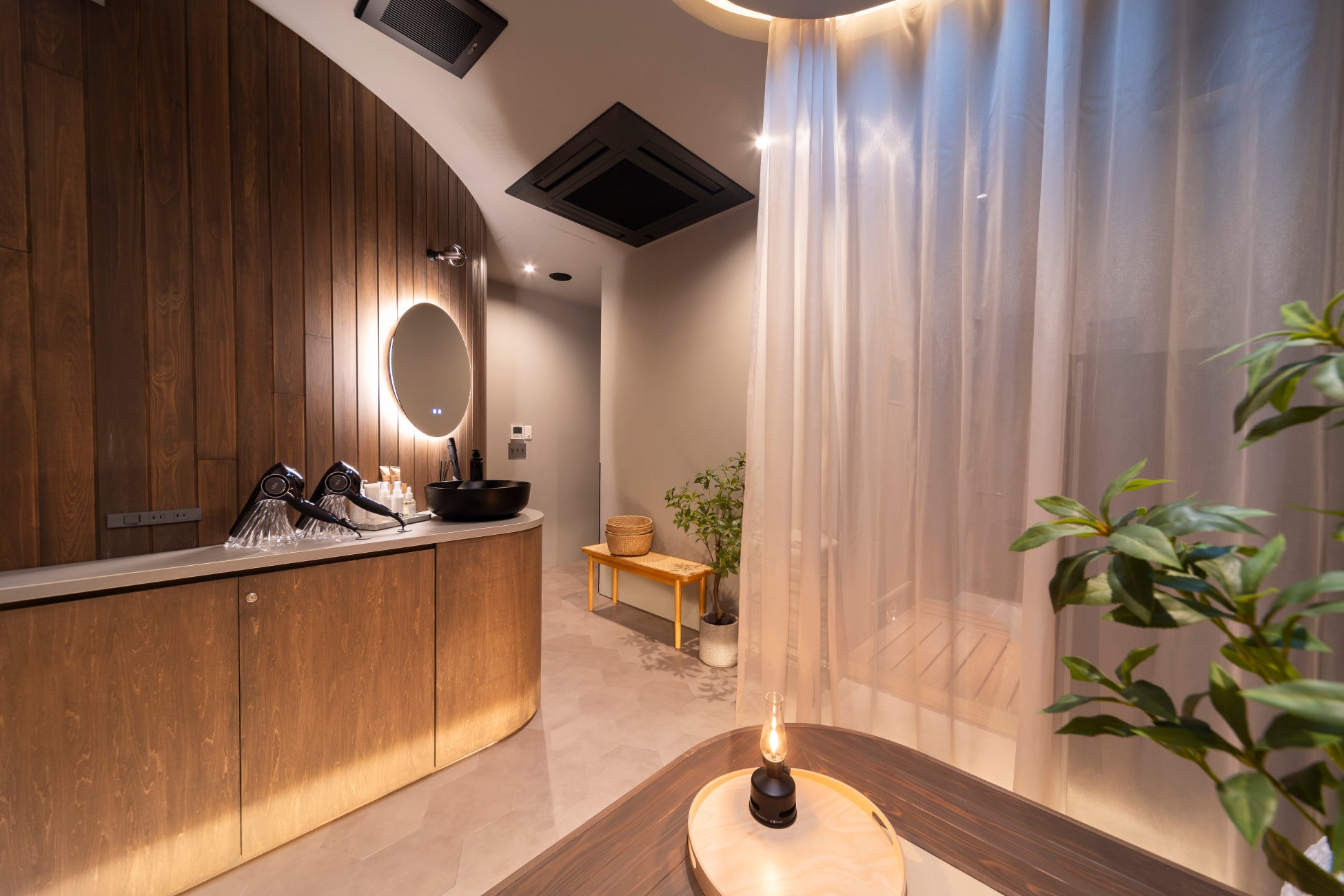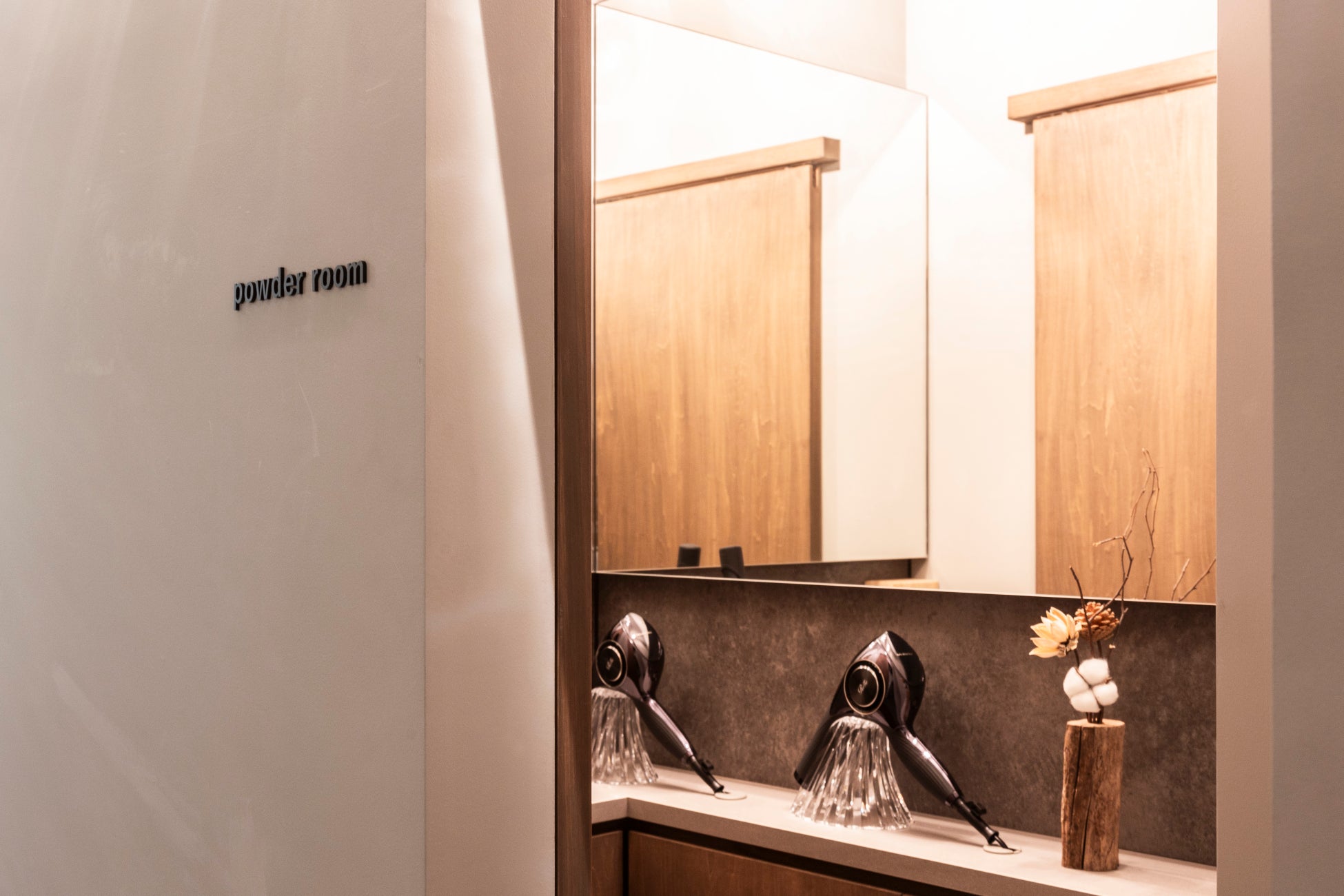 またサウナのご利用後には、共用部分に清潔感あるパウダールームをご用意しています。スキンケアや身支度をゆったりと整えられる空間です。