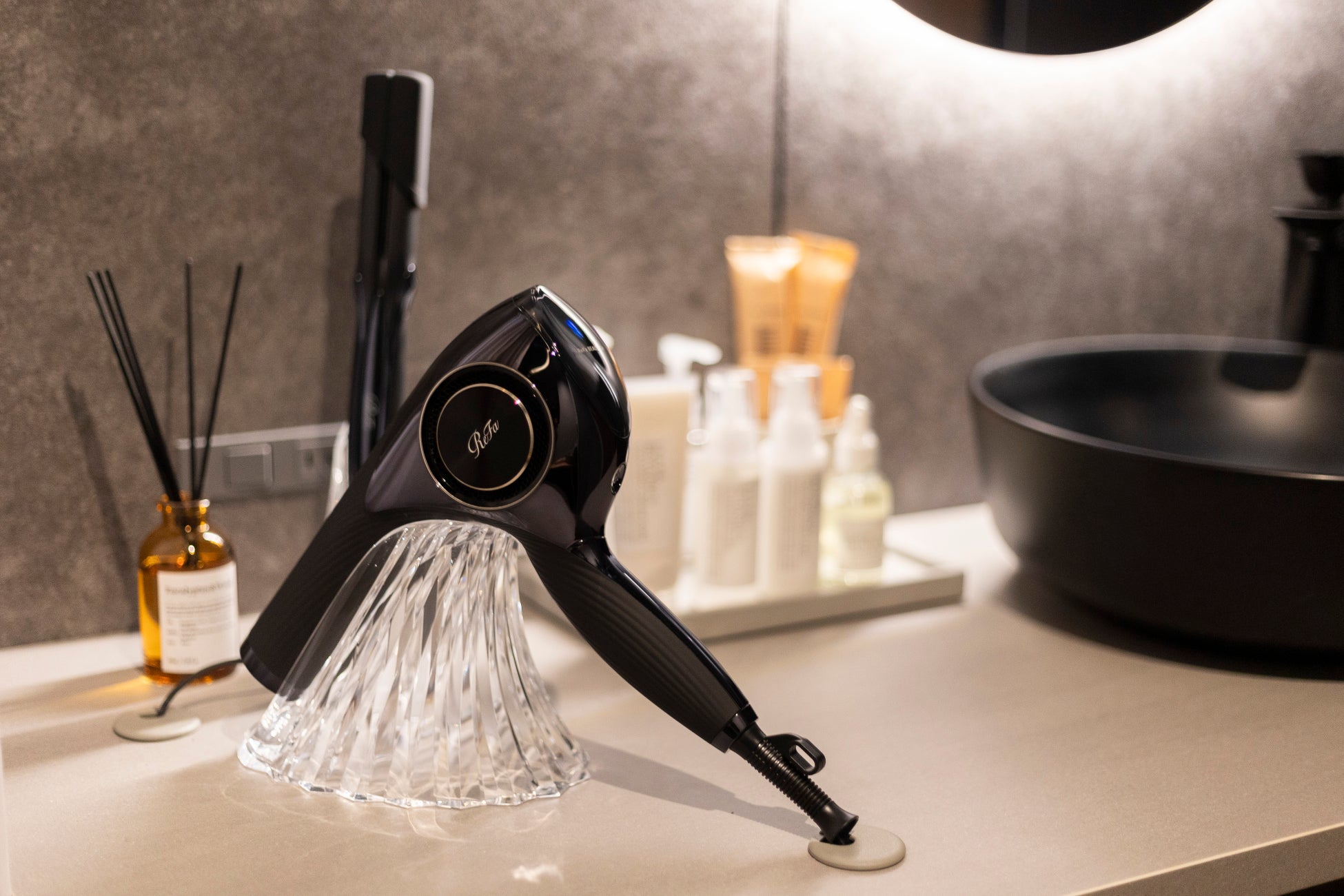 全室には、話題のReFa(リファ)のシャワーヘッドやドライヤー、ヘアアイロンを完備。リーフボタニクス(LEAF&BOTANICS)のスキンケアアメニティも揃え、アフターサウナも快適に。